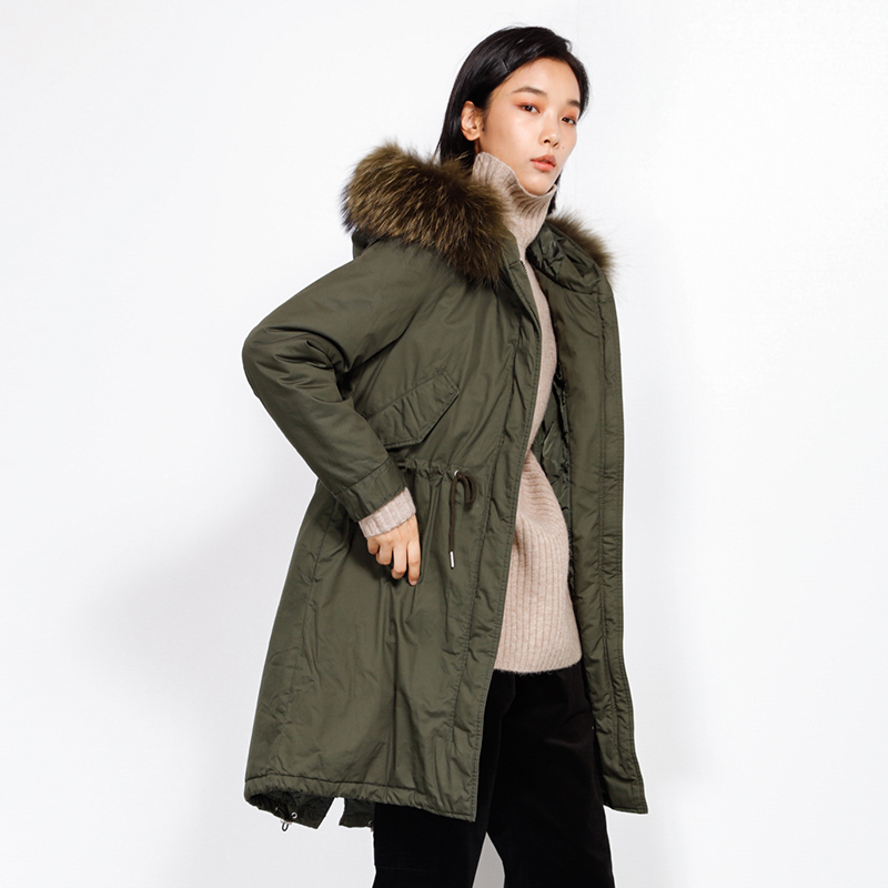 中和休闲冬季中长款燕尾连帽棉服女时尚收腰棉衣带毛领夹棉外套