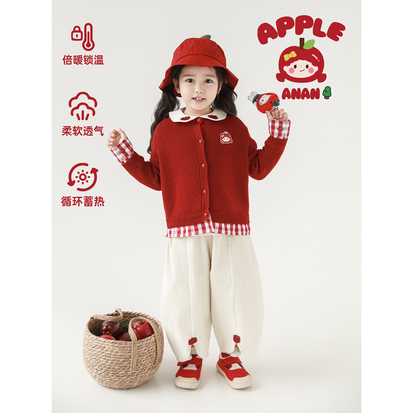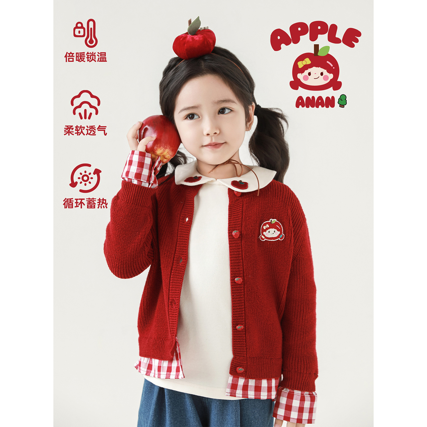 幼悠女童毛混纺韩系开衫2025秋季萌趣可爱大头贴绣标假两件毛衣潮