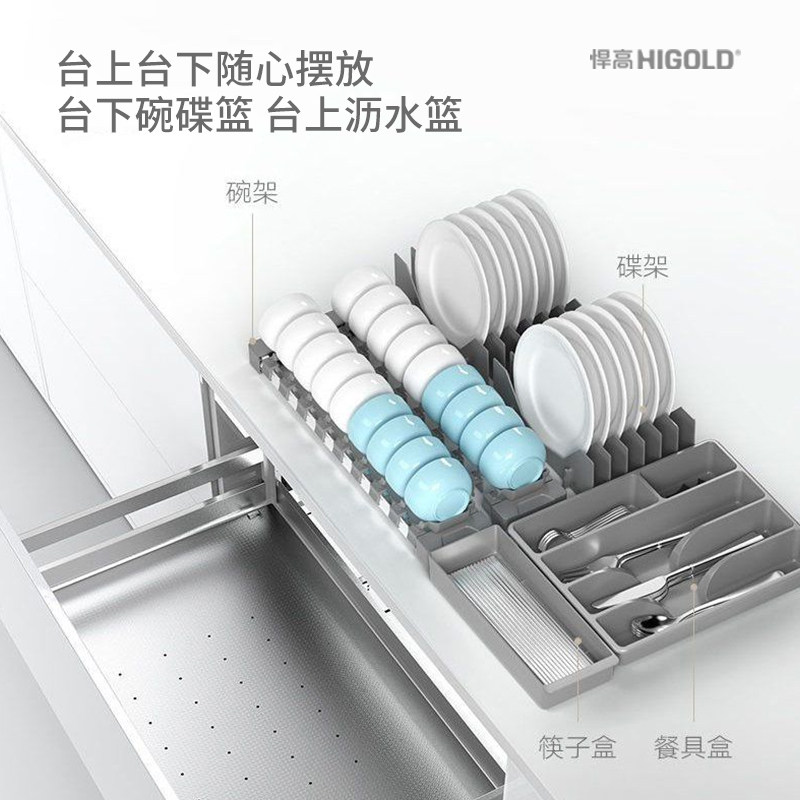 悍高橱柜304不锈钢碗碟架柜内台面水碗架厨房收纳碗碟篮沥碗碟架