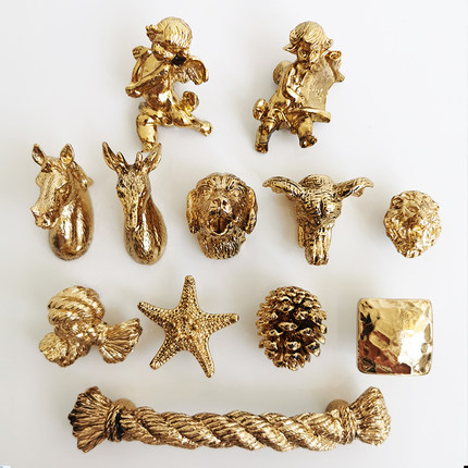 台湾轻奢复古拉手北欧黄铜金色