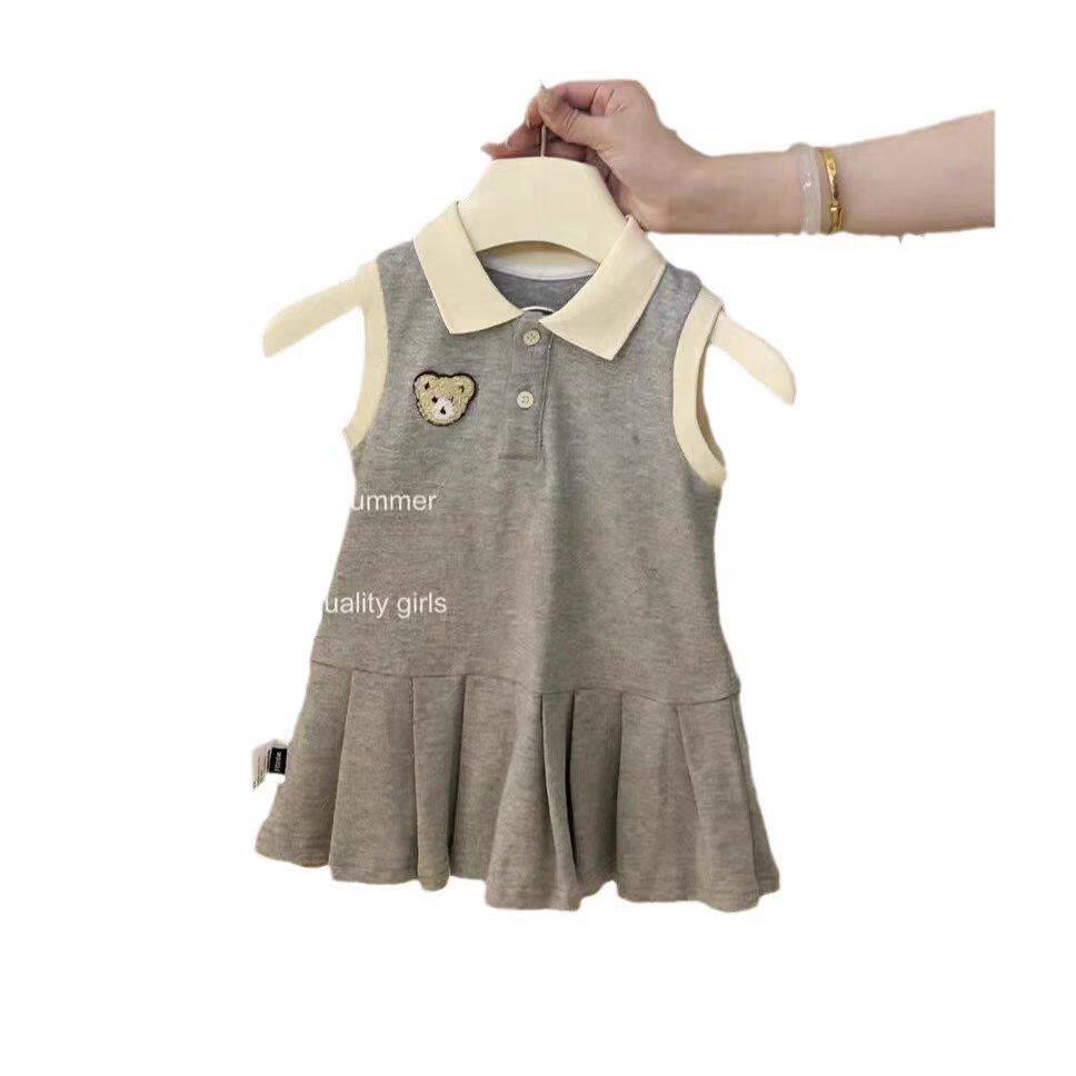 女童夏季2026新款灰色小熊学院风裙子女宝宝洋气polo裙背心连衣裙