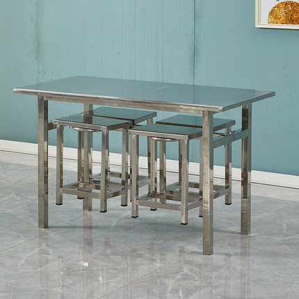 不锈钢挂凳桌食堂餐桌椅4人6人位学校工厂员工食堂长方形快餐桌椅