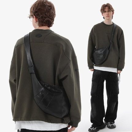 法式小众设计师饺子包男生潮牌胸包斜挎包可颂牛角包皮质男包大包