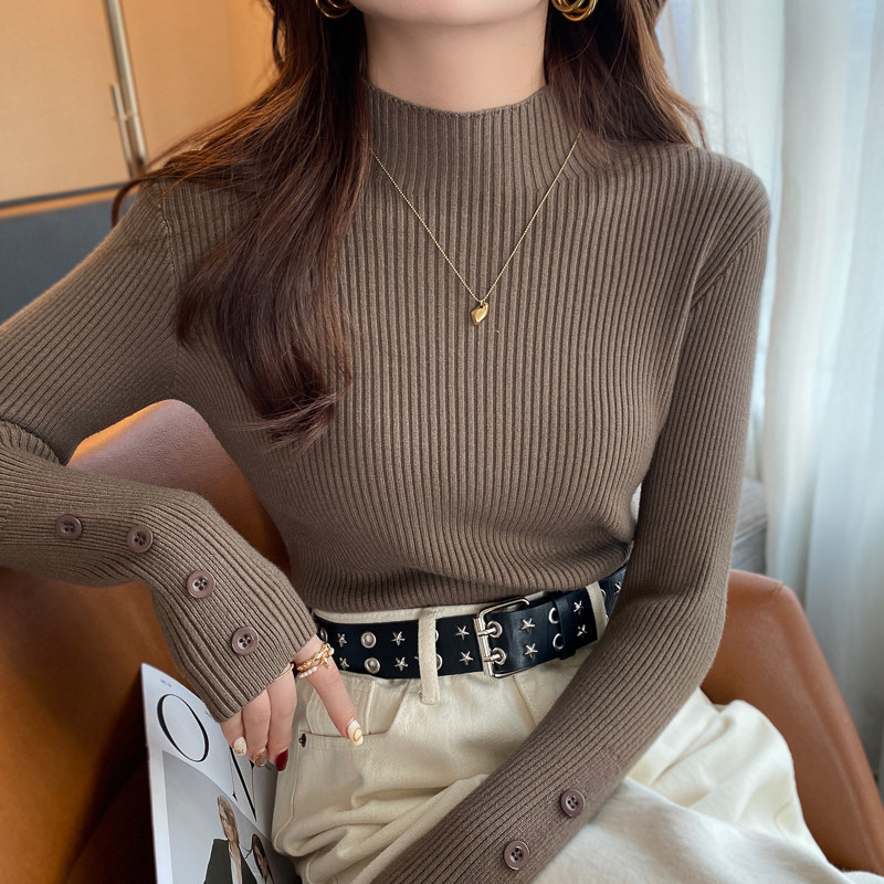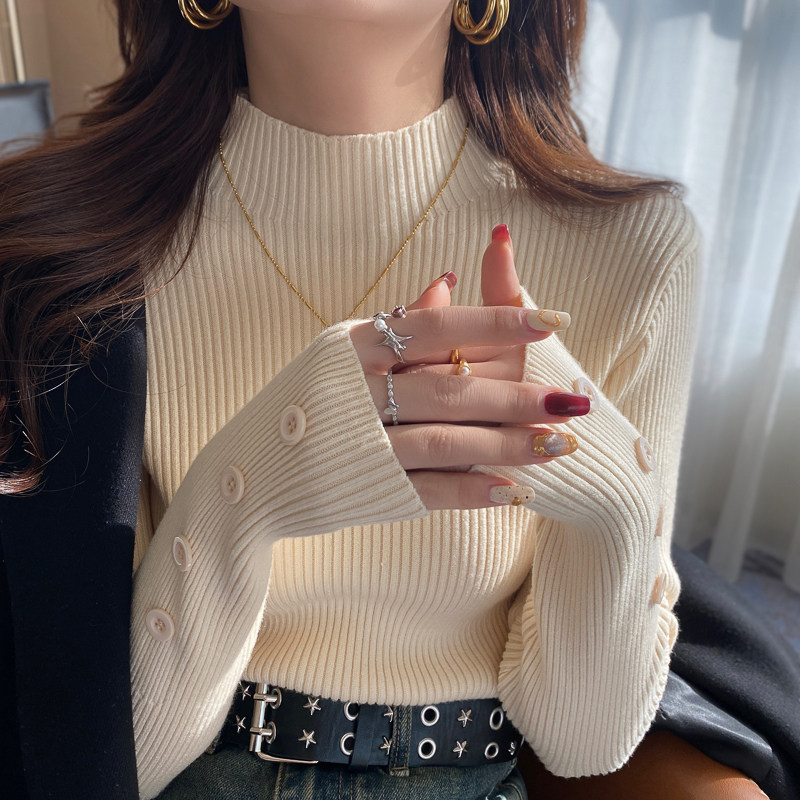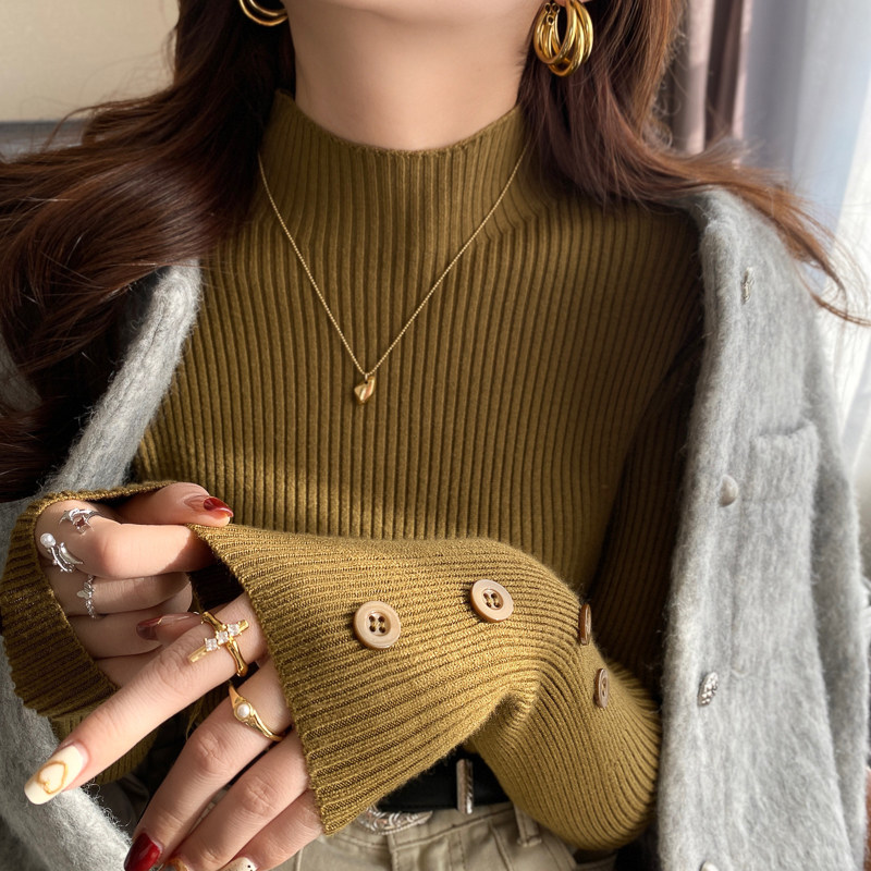 修身内搭半高领设计感针织打底衫