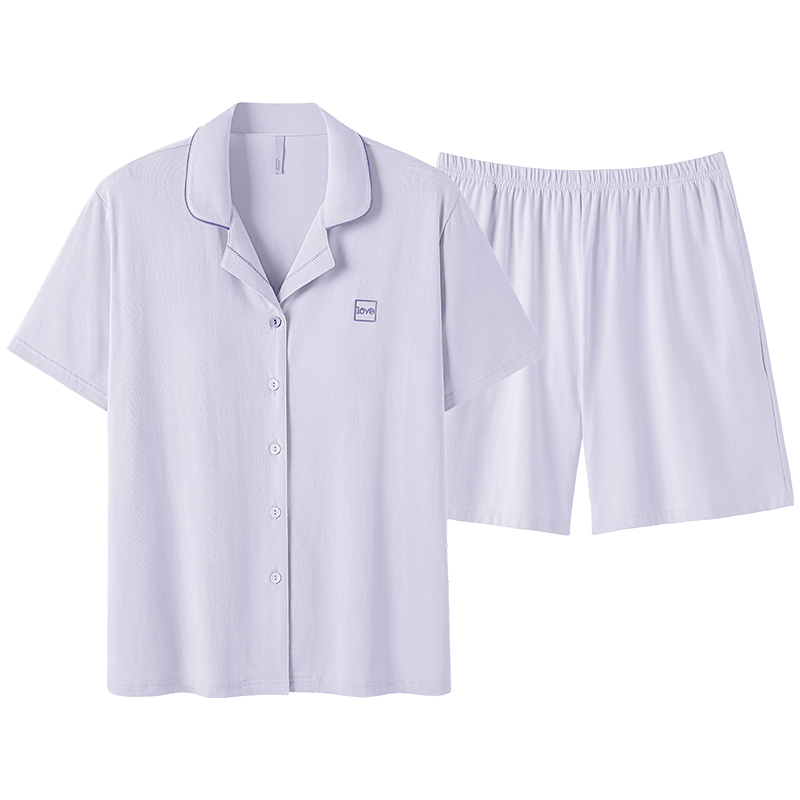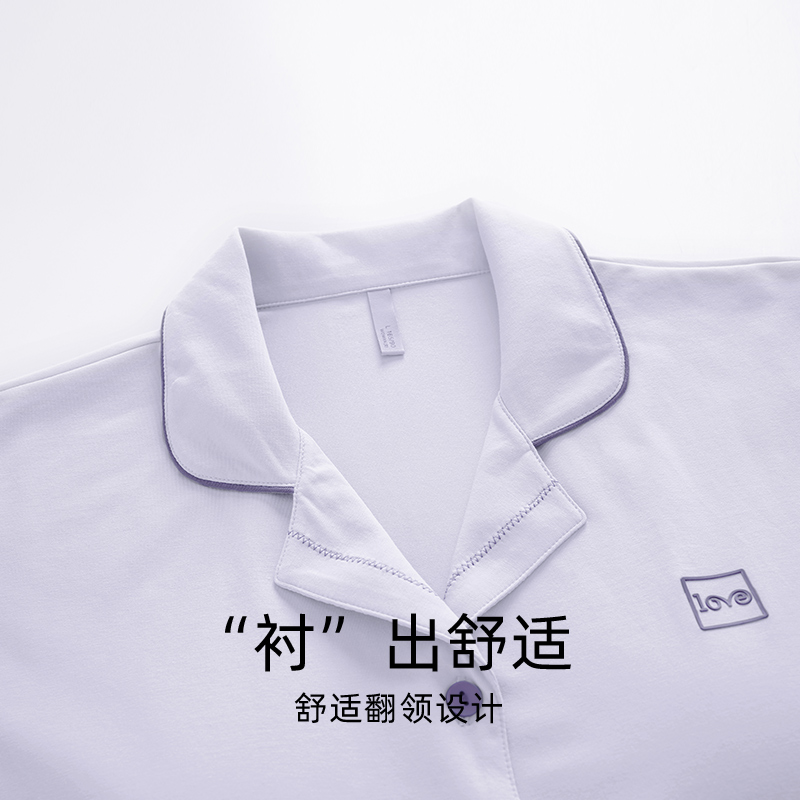 芬腾可安情侣睡衣女夏季薄款莱赛尔棉短袖短裤简约宽松男士家居服