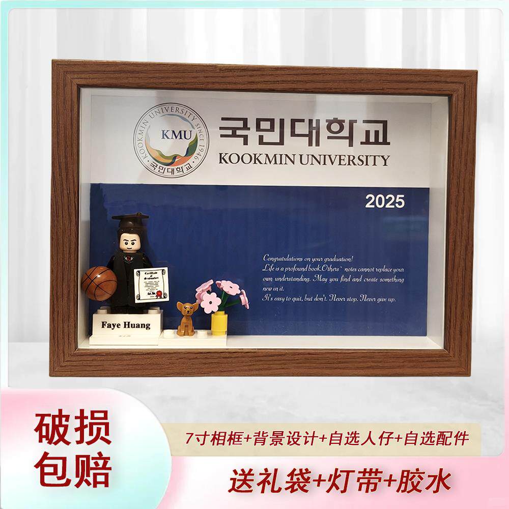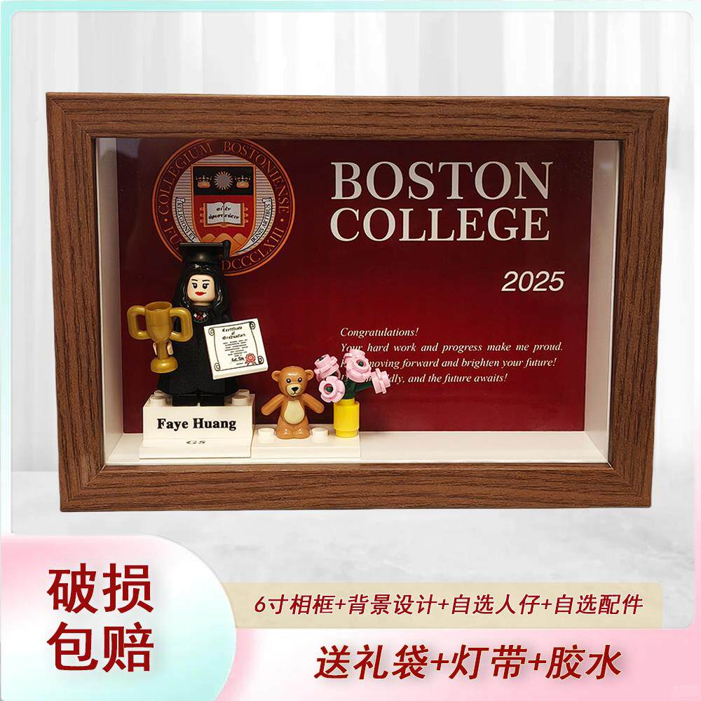 毕业人仔定制积木送礼情侣闺蜜摆台装饰照片背景礼物高级摆件相框