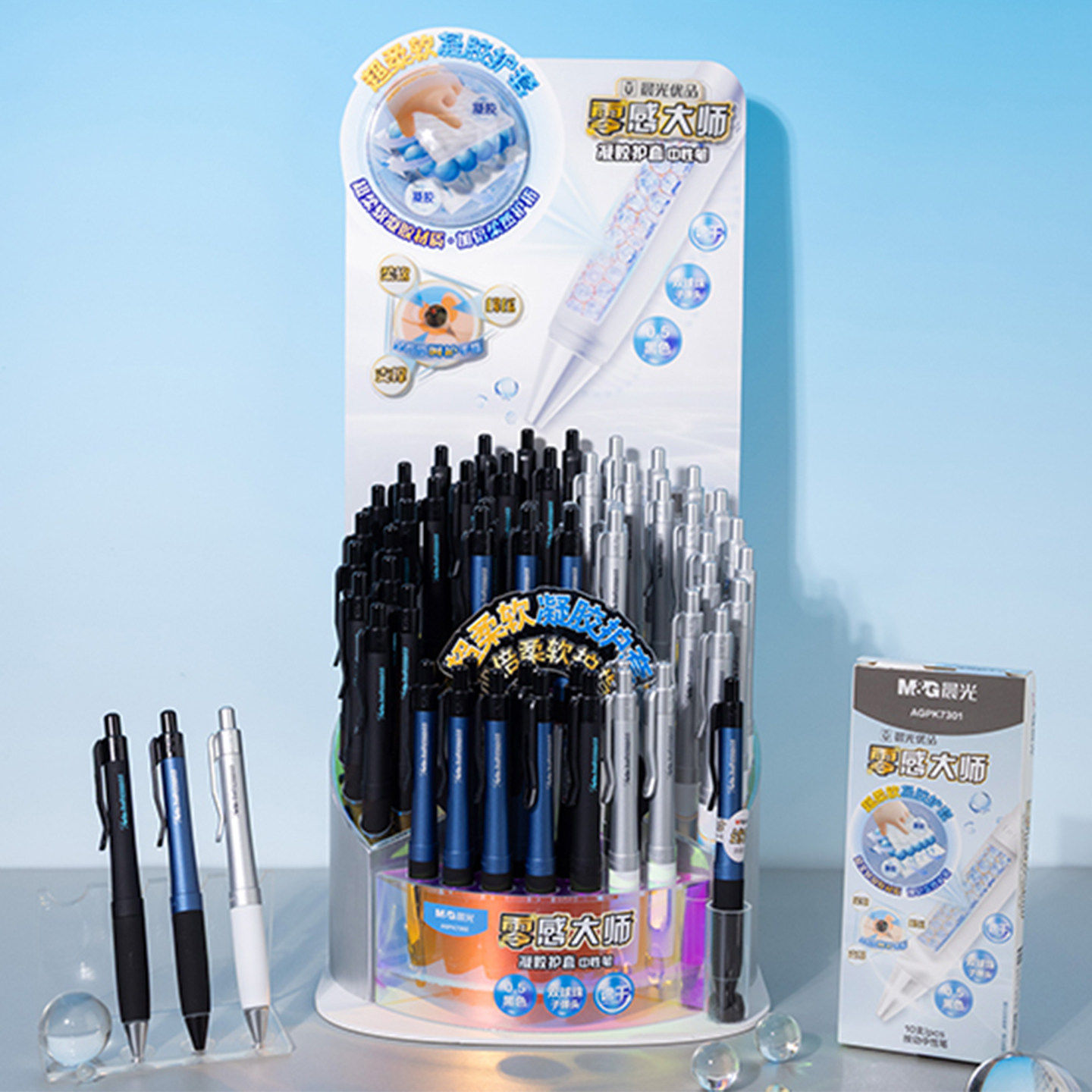 晨光 优品 零感大师按动中性笔超柔软凝胶护手胶套0.5mm黑色速干双球珠子弹头简约学生办公书写K7301文具