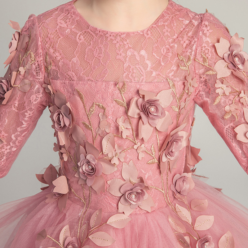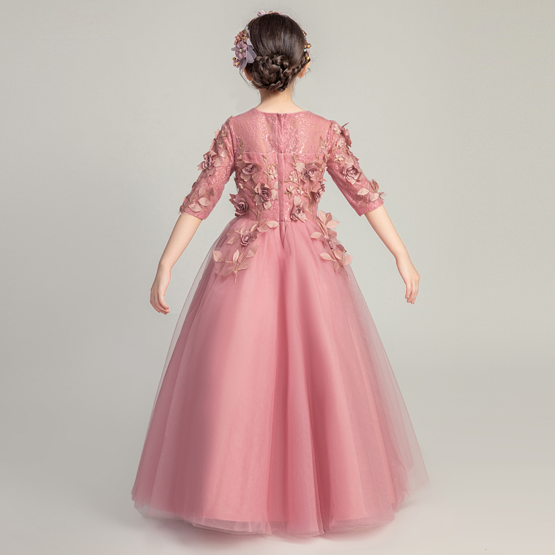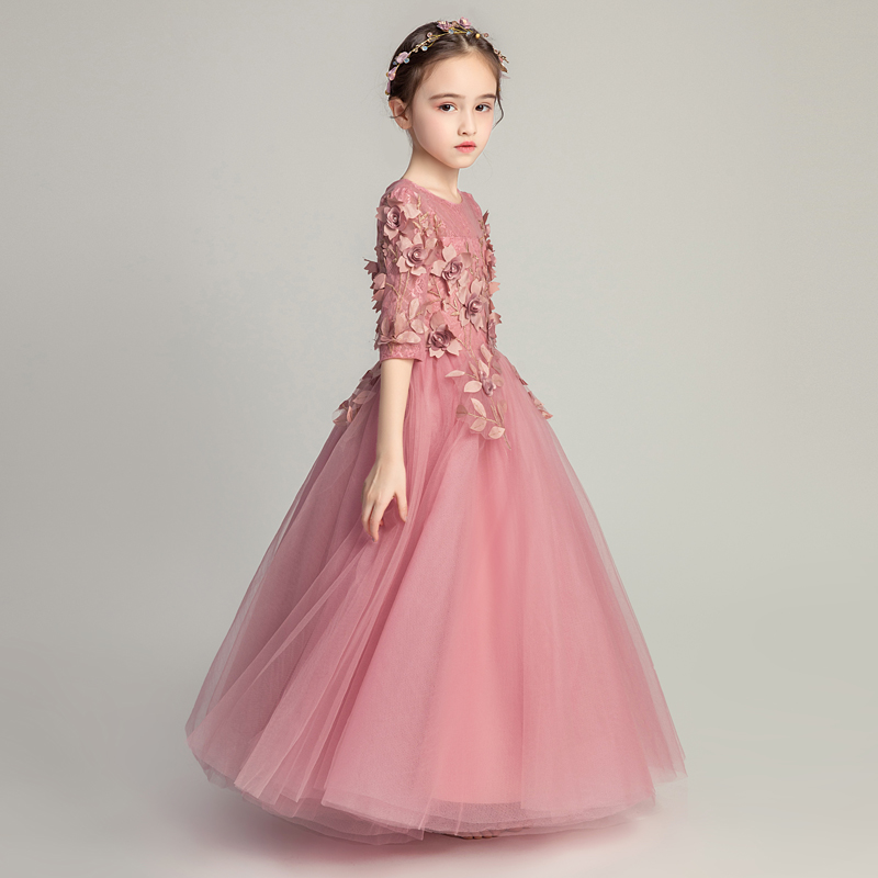 女童晚礼服公主裙长袖婚纱蓬蓬裙小主持人花童钢琴表演服模特走秀