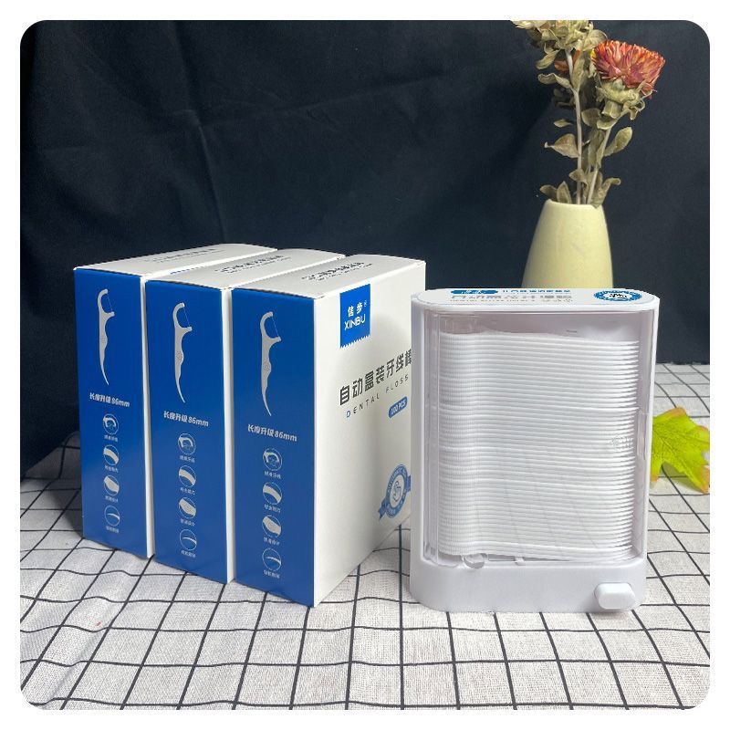 信步一次性剔牙牙签按压式自动弹出牙线棒家庭装超细牙线棒自动盒