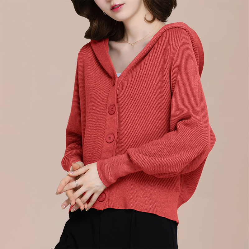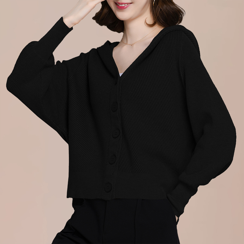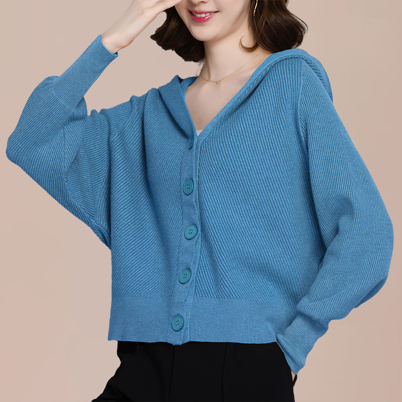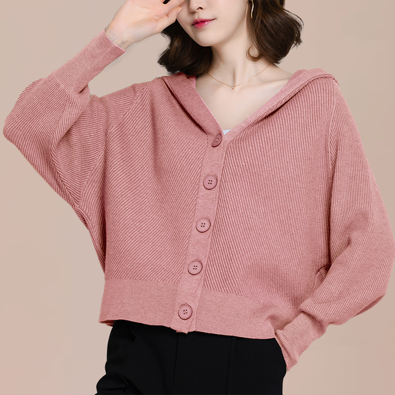 短款连帽针织开衫女士蝙蝠衫毛衣外套2025新款春秋季休闲宽松上衣