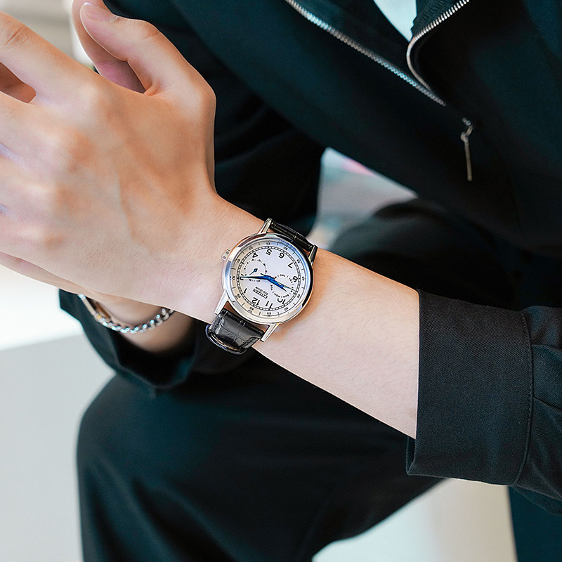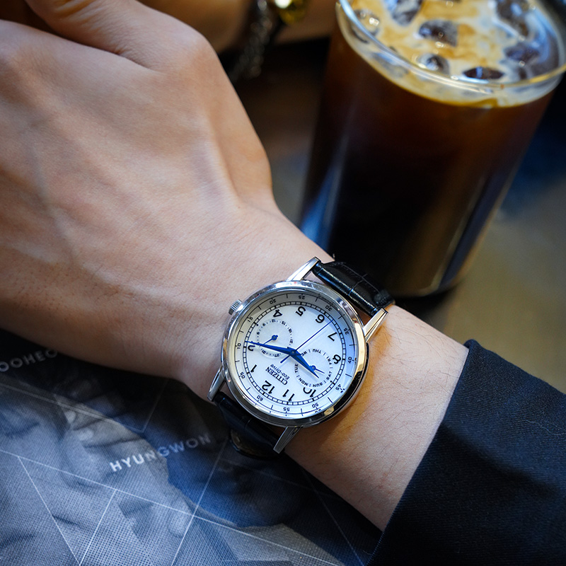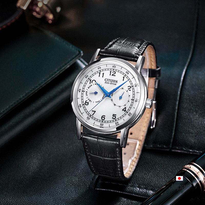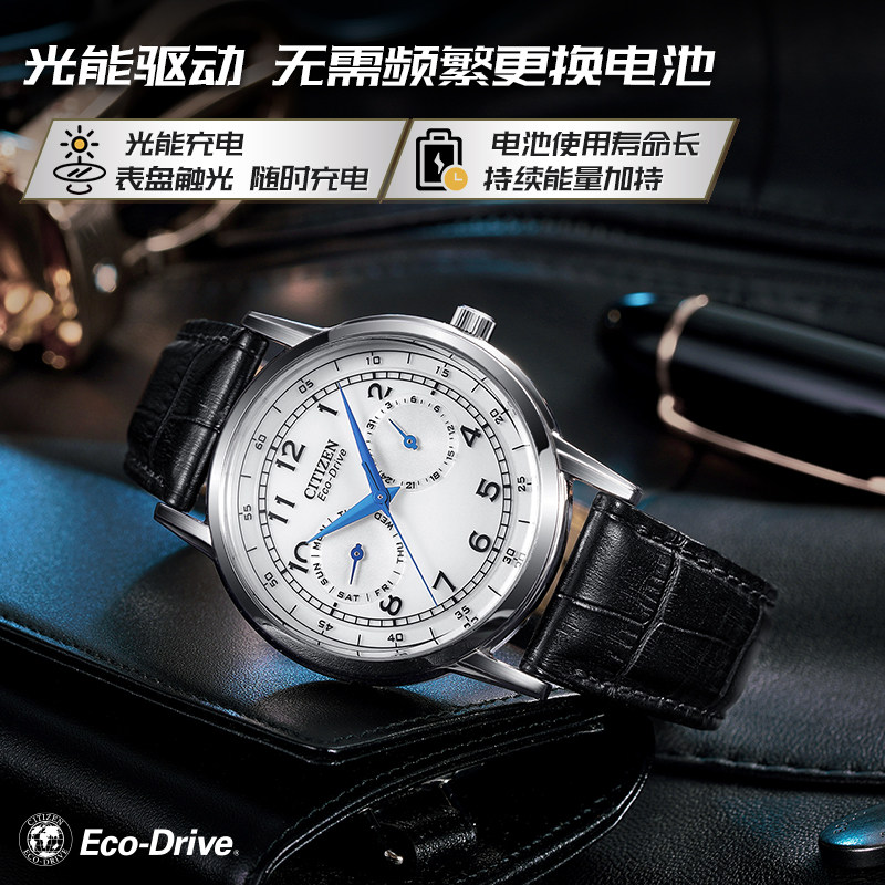 【自营】西铁城手表男 光动能小蓝针商务休闲皮带男表AO9000-06B