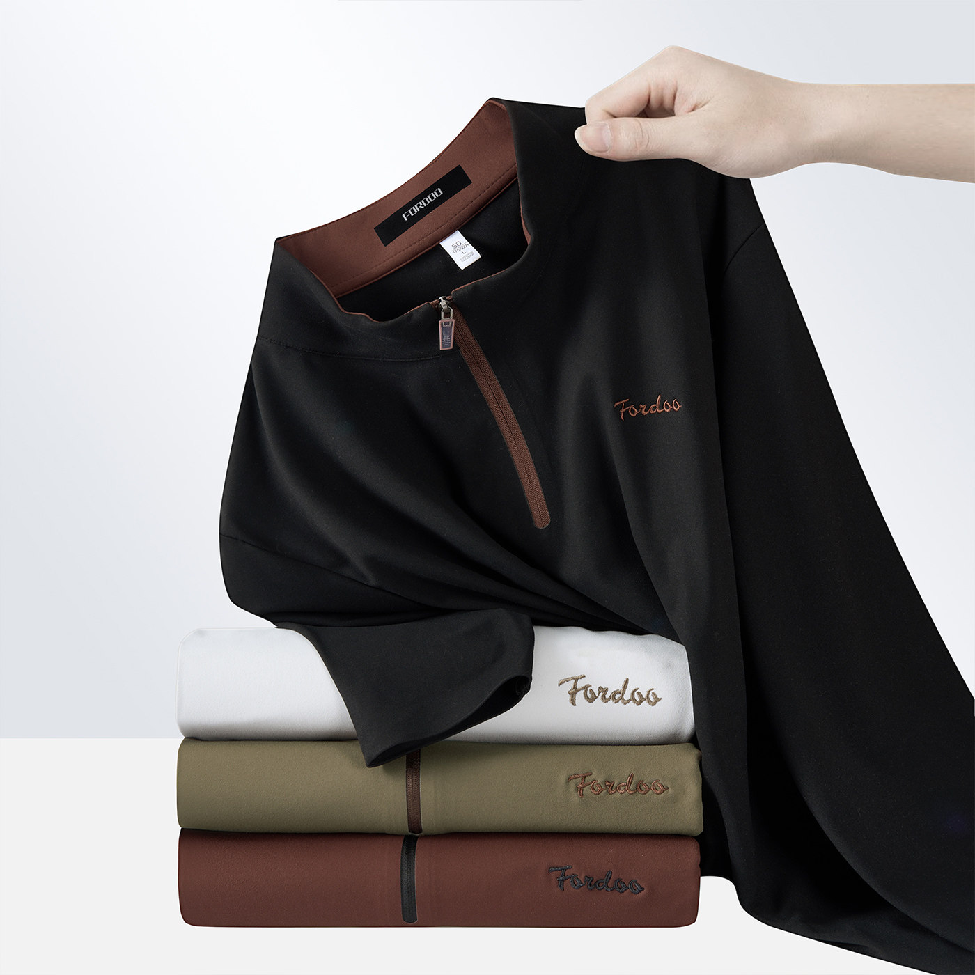 【半拉链T恤&锦氨面料】虎都弹力舒适秋春季男士内搭长袖刺绣T恤