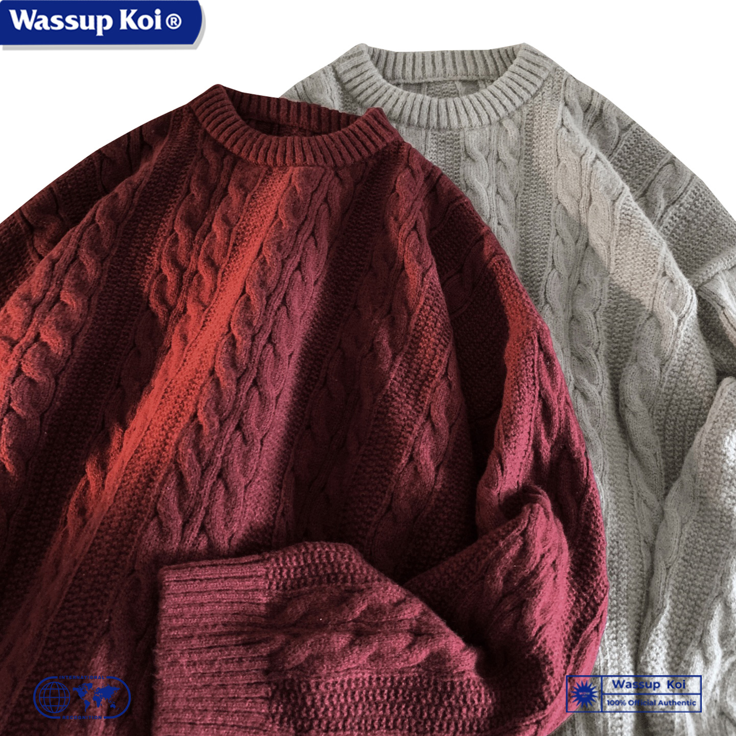 WASSUP KOI联名麻花设计毛衣男秋冬季保暖针织衫上衣潮牌线衣外套