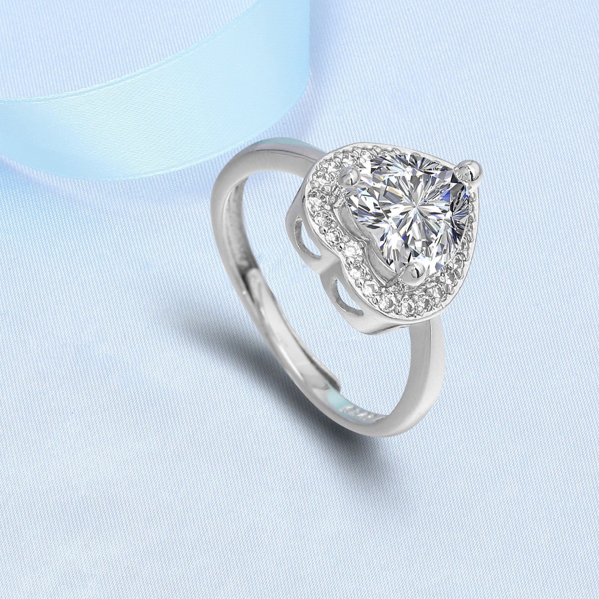欧美时尚公主风爱心硞石镶钻戒指少女简约甜美求婚订婚结婚珠宝