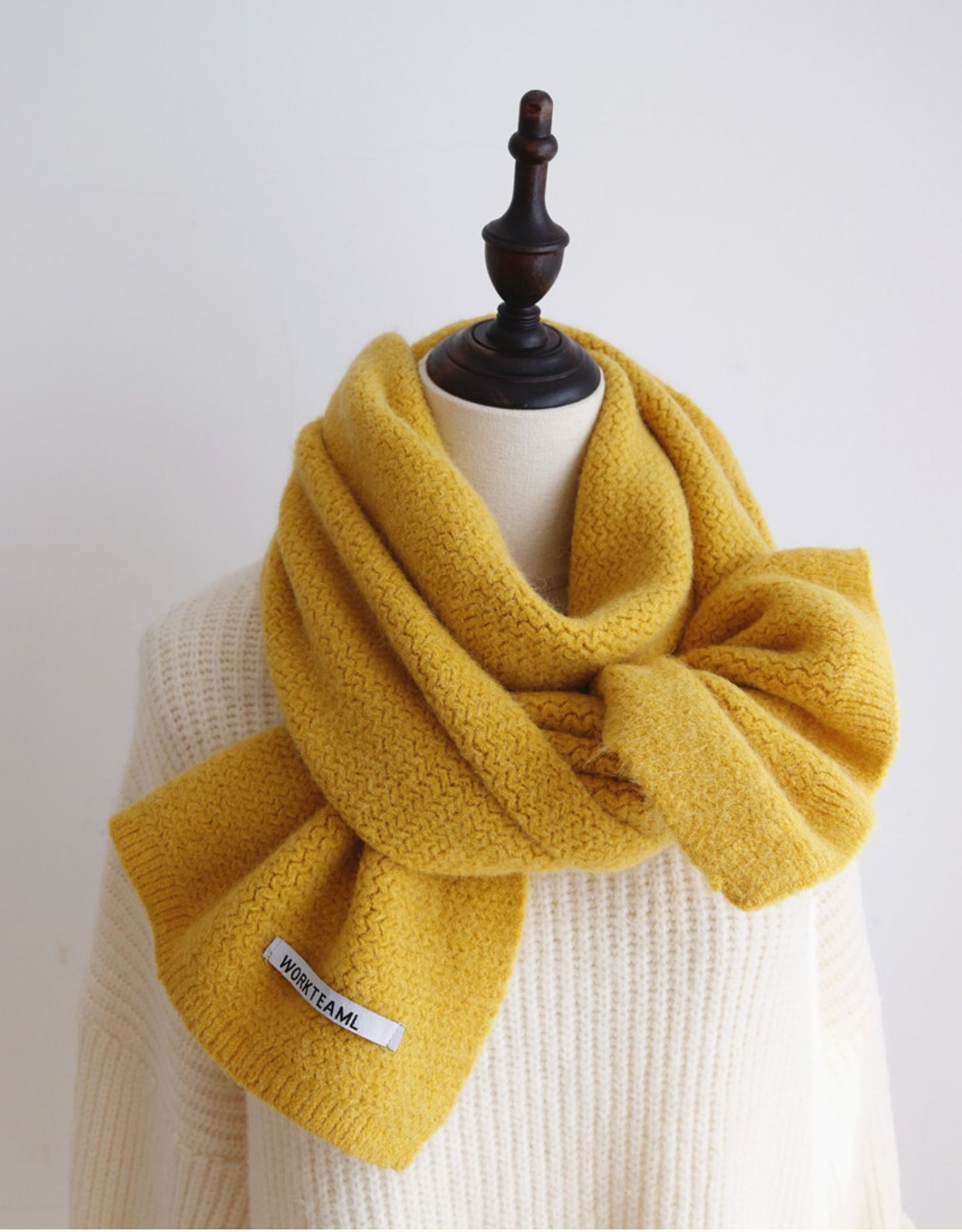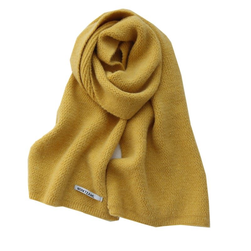 韩国东大门冬季男女生时尚单色纯色黄色围巾针织毛线学生情侣围脖