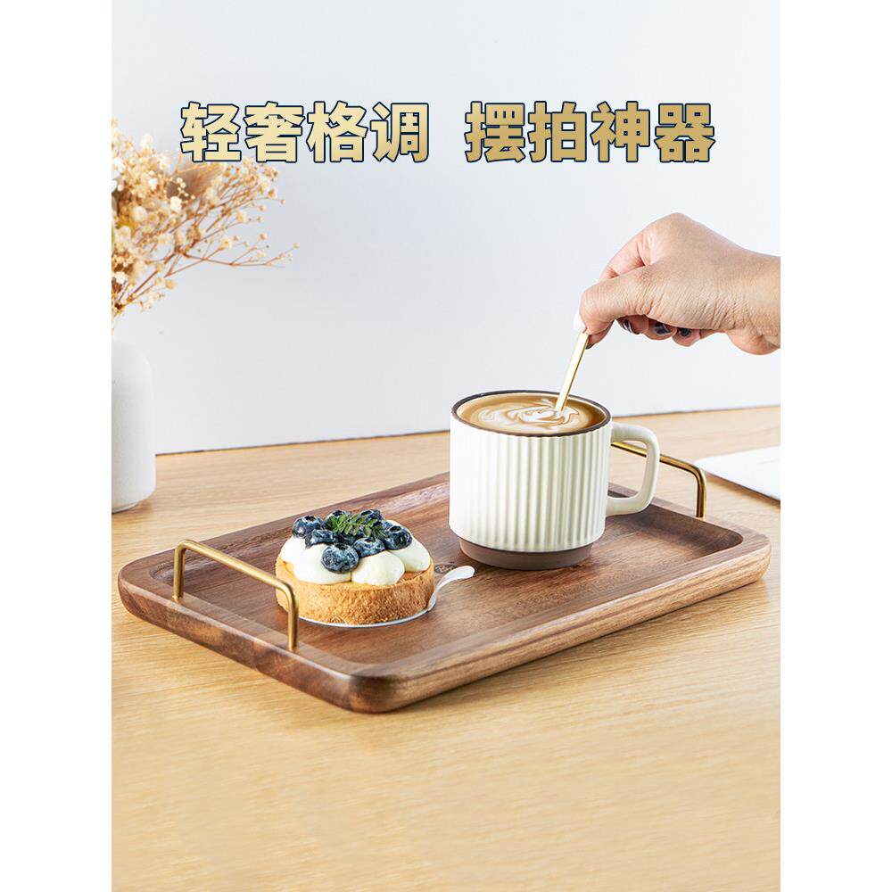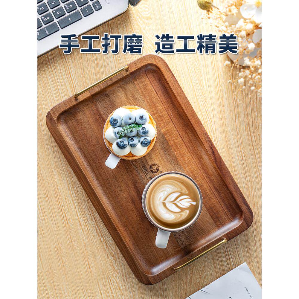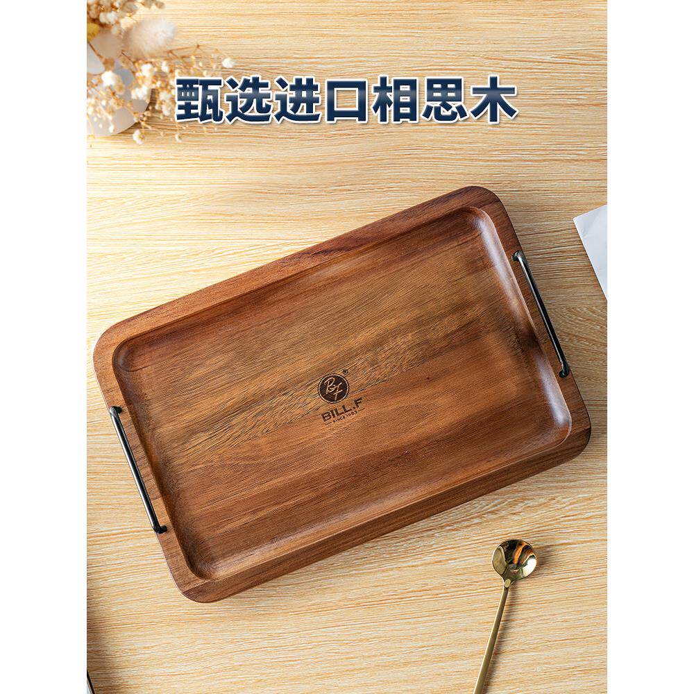 比尔。F金合欢木柄托盘精美方便豪华餐盘家用水果盘木制托盘展示