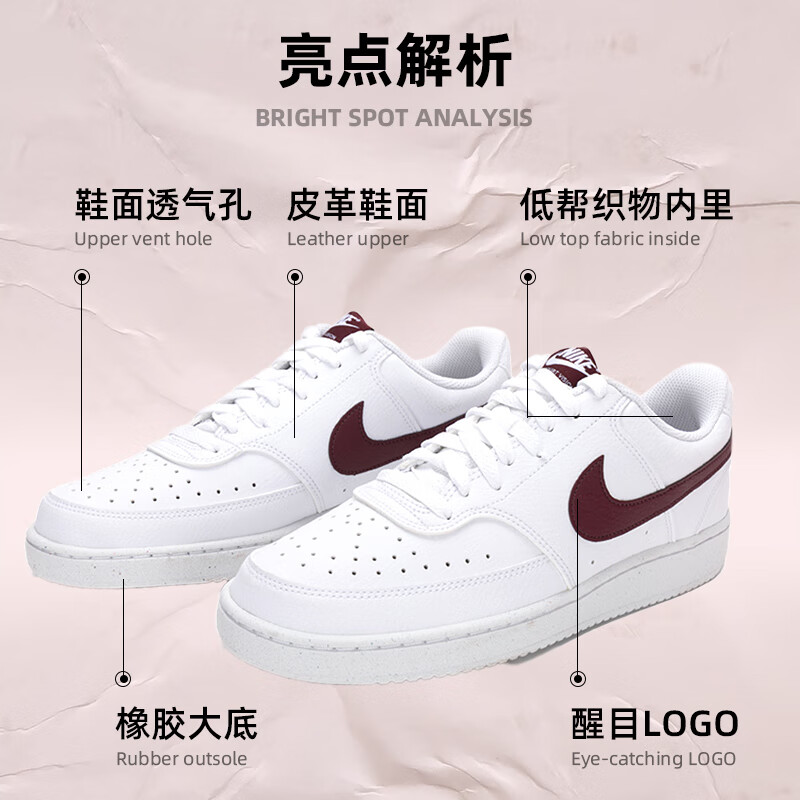 Nike耐克男鞋秋季新款COURT复古运动鞋透气小白鞋休闲板鞋DH2987