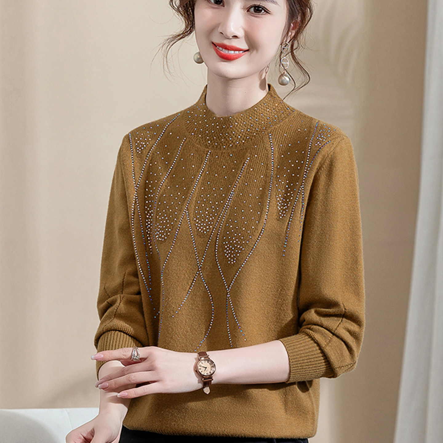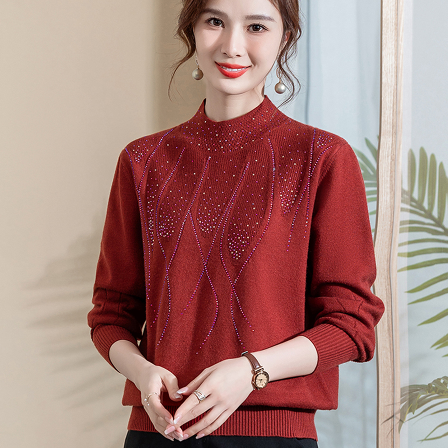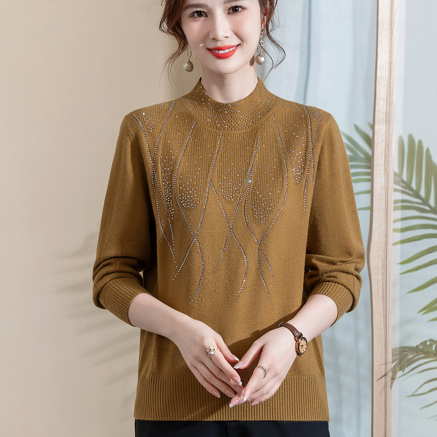 妈妈针织衫秋装半高领毛衣小衫