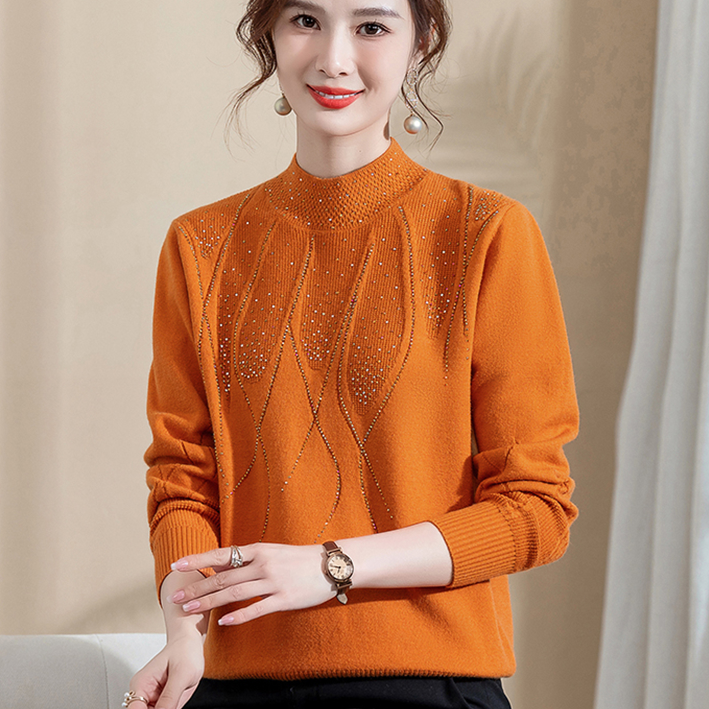 妈妈针织衫秋装半高领毛衣小衫洋气新款减龄上衣中老年女装打底衫