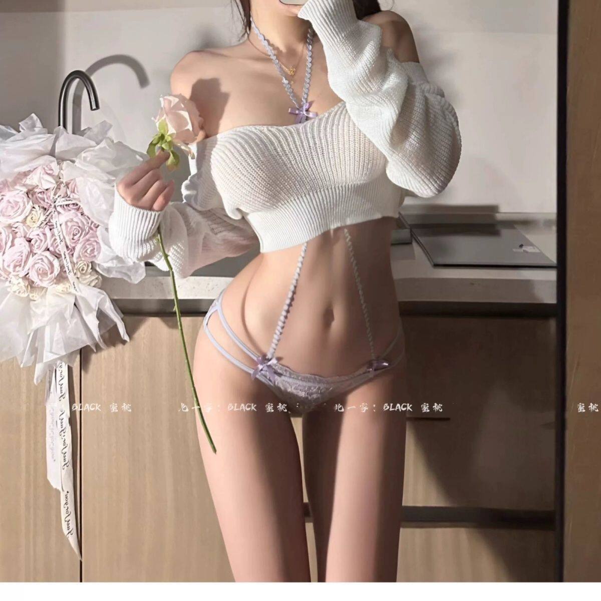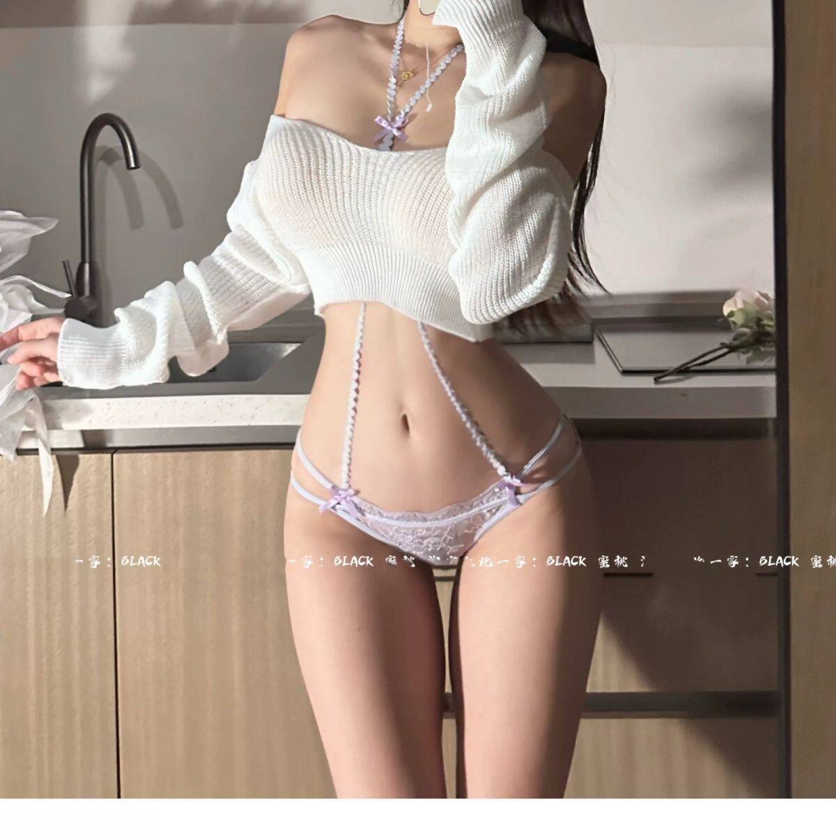 BLACK 欲*纯欲性感低饱和紫色蝴蝶结挂脖内搭聚拢文胸套装内衣女