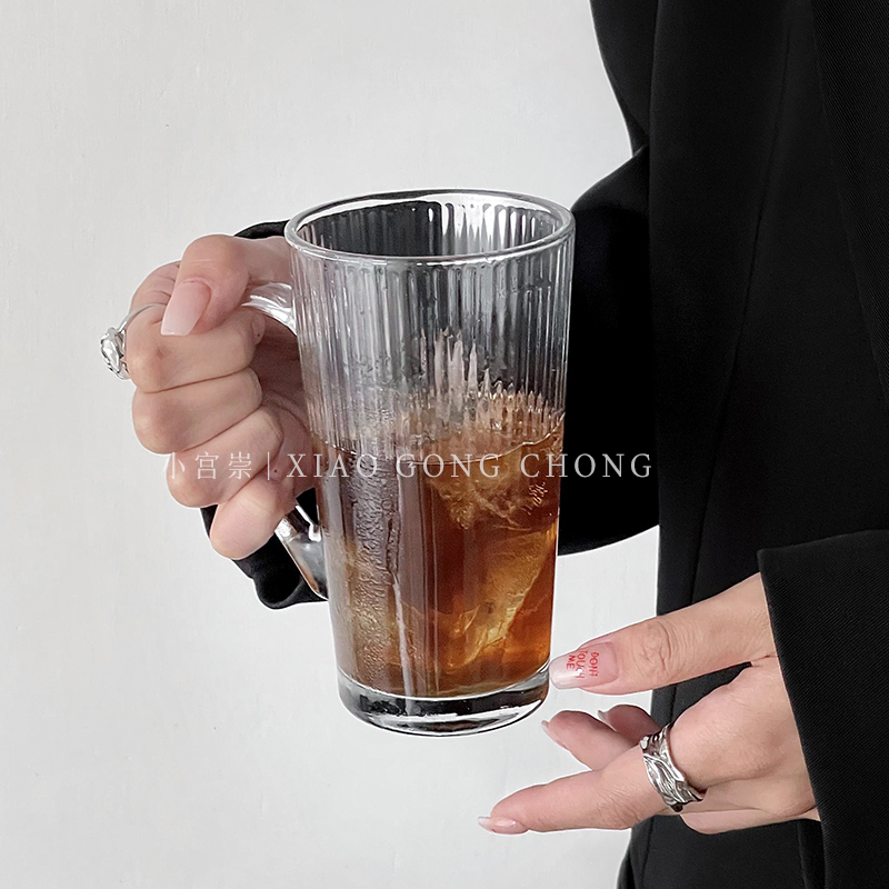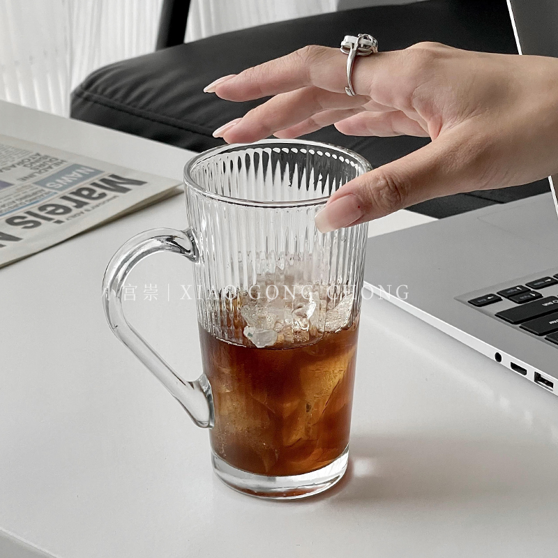 ins风简约家用夏天带把玻璃杯
