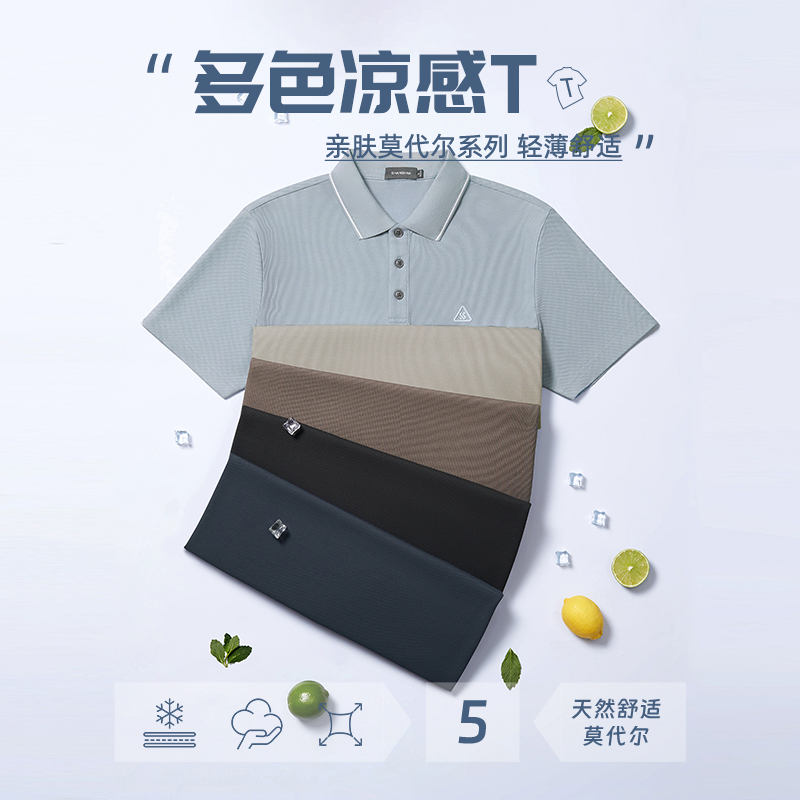 杉杉官方凉感polo衫男款2025夏季新款短袖上衣男纯色休闲翻领T恤