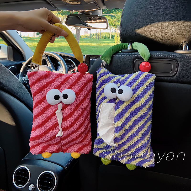 大眼球车载纸巾盒创意可爱纸抽盒挂袋汽车用纸巾R袋车内挂式抽纸