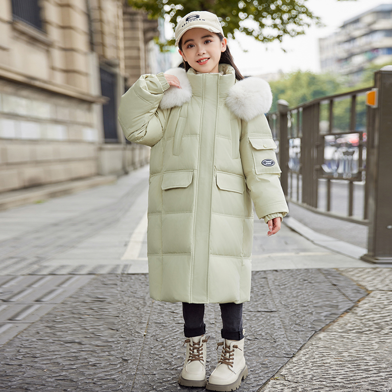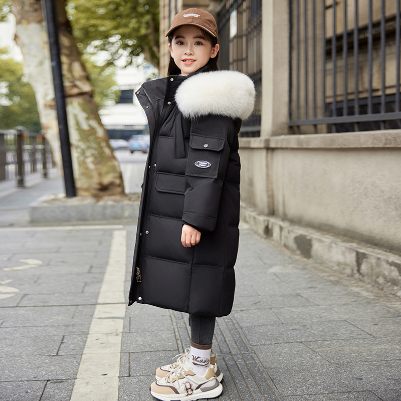 正品巴拉品女童中长款羽绒服加厚