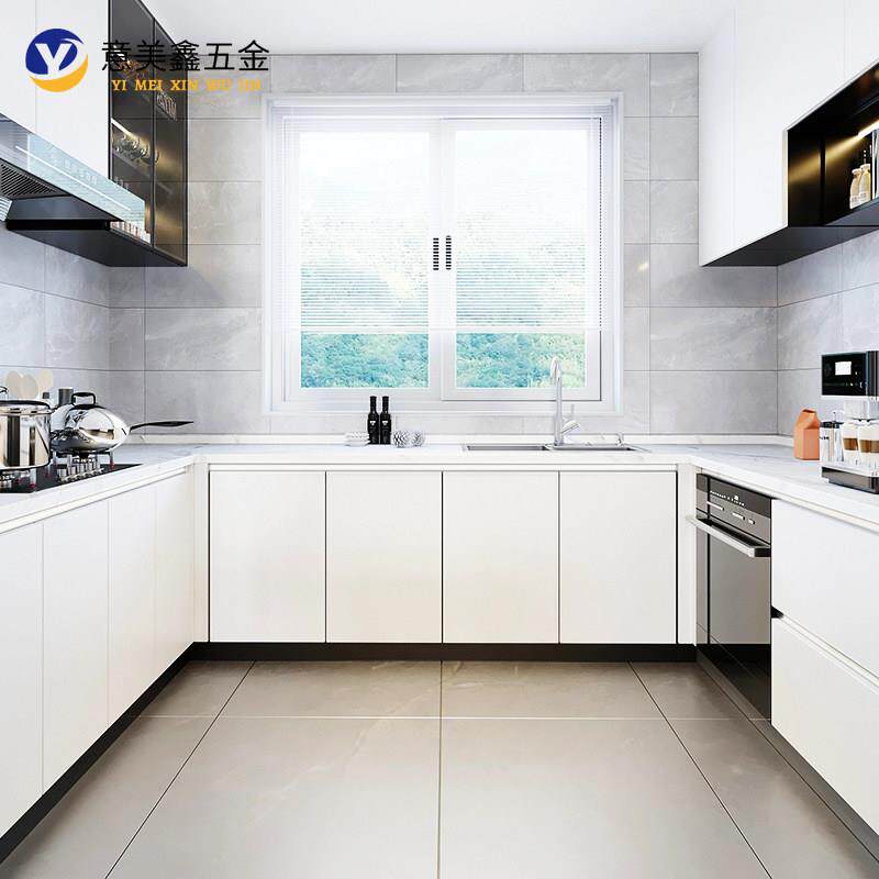 整体橱柜免拉手铝材型材u型槽l型羊绒灰免拉手暖白色整体橱柜门隐