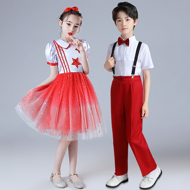 六一儿童大合唱团演出服中小学生主持礼服幼儿园表演服装诗歌朗诵