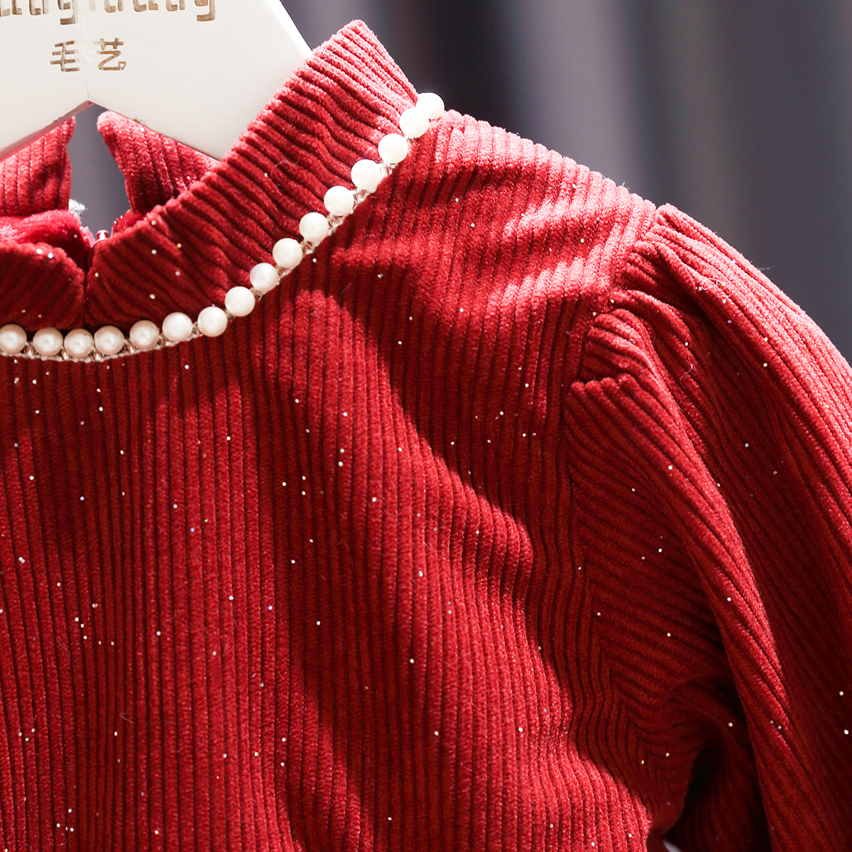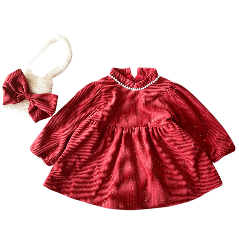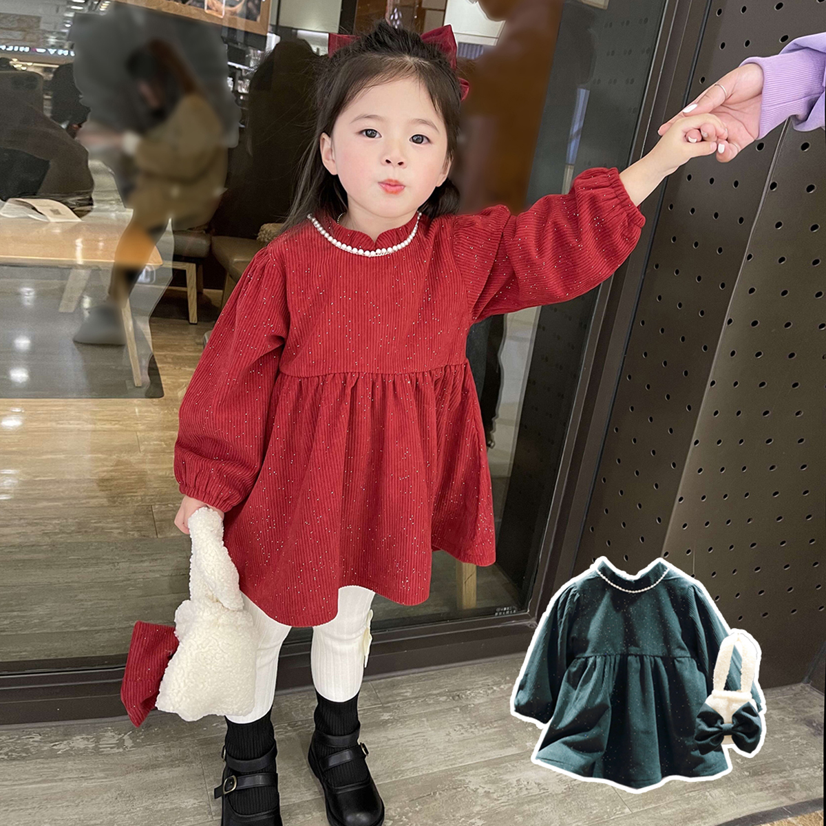 1-5岁女宝宝质感灯芯绒裙3女童冬装新款女婴儿圣诞新年加绒连衣裙