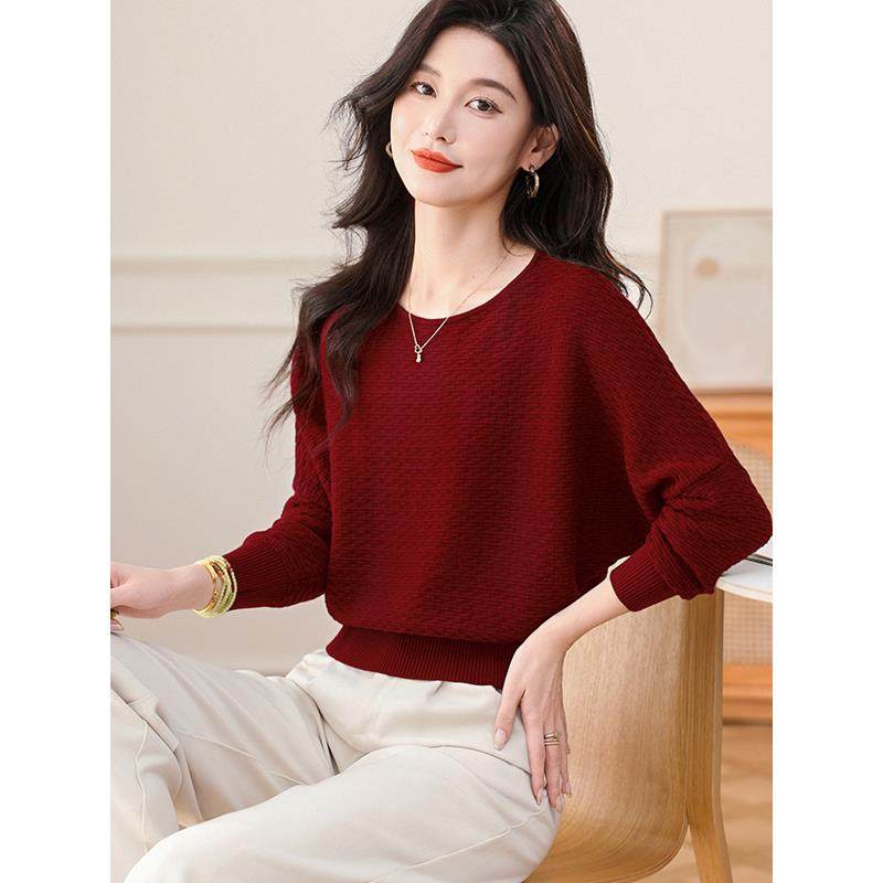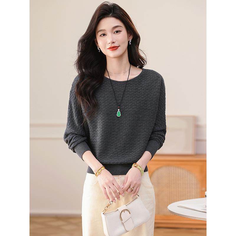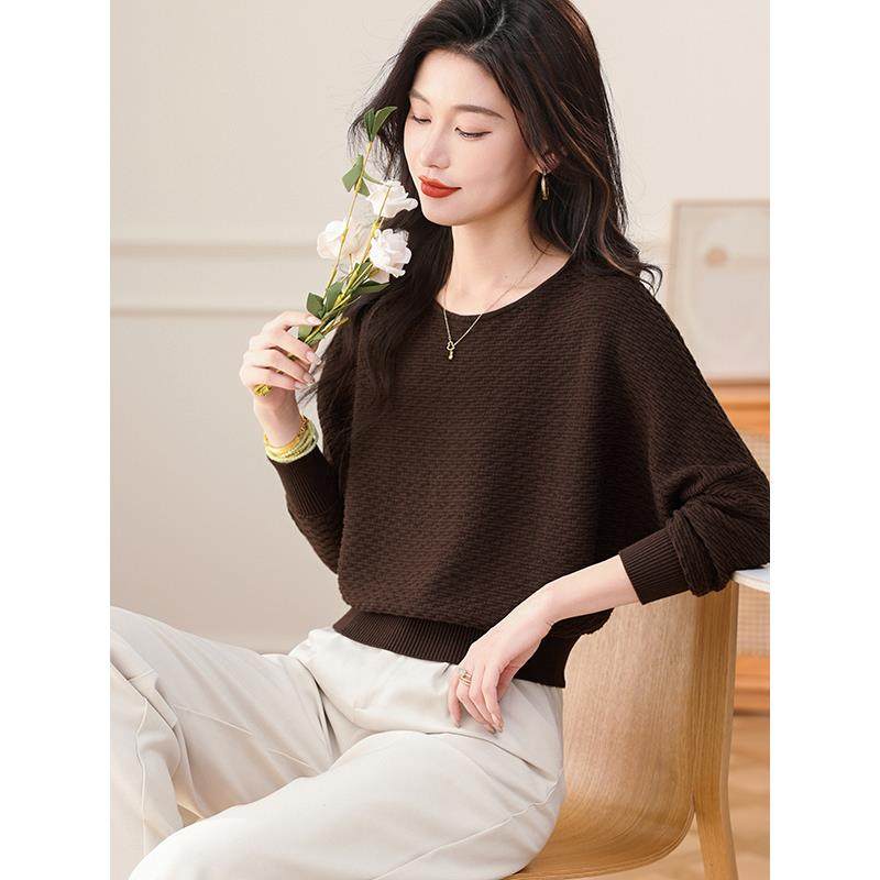时尚蝙蝠衫套头毛衣女新款秋季短款宽松遮肚子洋气针织打底衫上衣