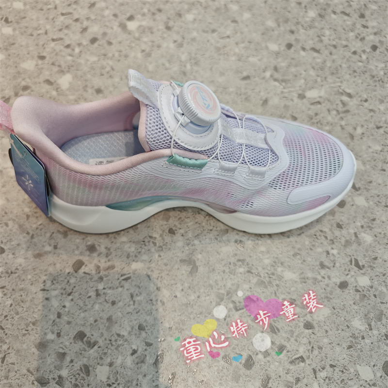 特步儿童2024夏676214114026正品女大童透气网面纽扣运动跑鞋