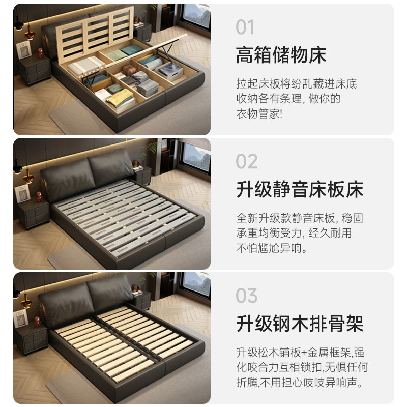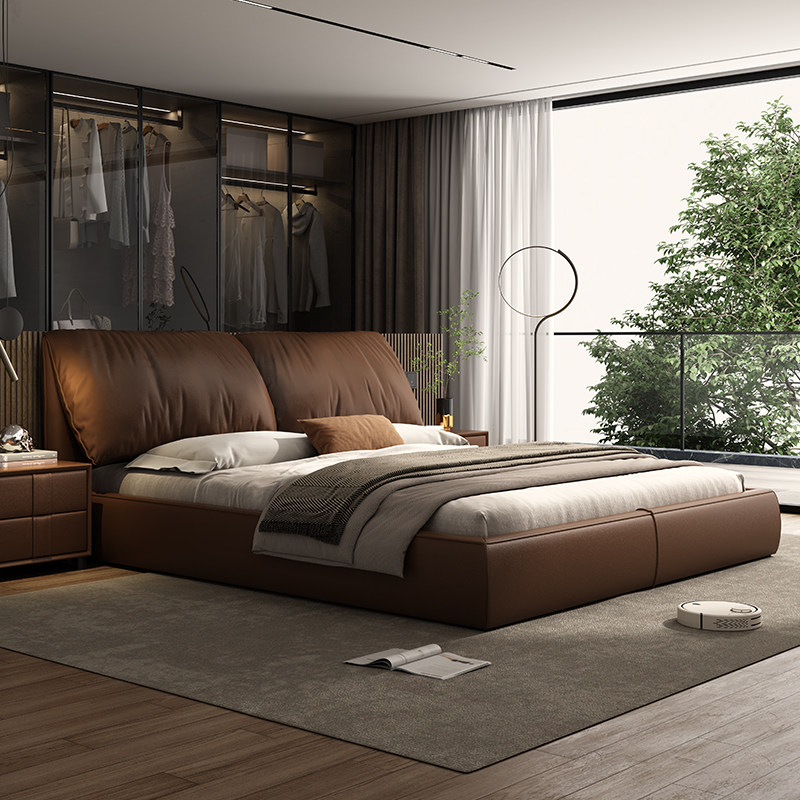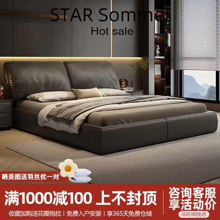 尚品宅配意式极简真皮床简约现代大象耳朵双人床主卧大床轻奢储物