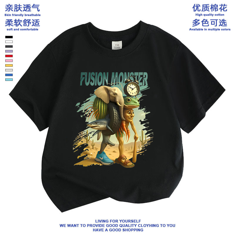 tungtungsahur木棍人衣服儿童国外山海经男童卡融合怪纯棉短袖t恤