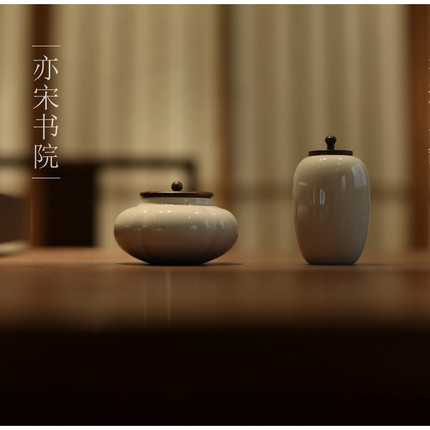 |亦宋书院|《草木灰》小茶仓 茶叶罐 香粉罐 陶瓷 胡桃木盖 小号