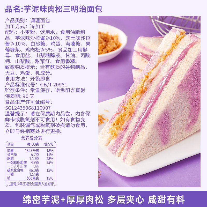 芋泥肉松三明治早餐面包整箱切片夹心吐司解馋小零食休闲食品小吃