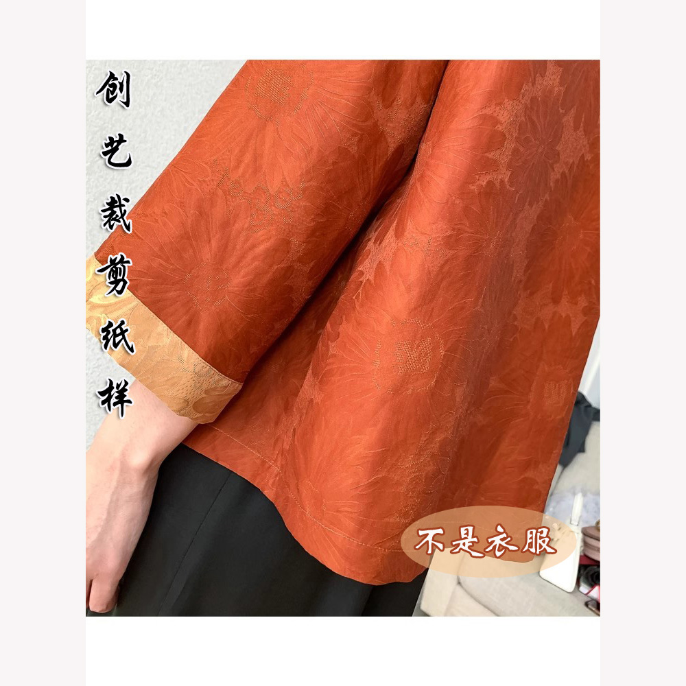 缝制衣服E388真丝花罗红云纱宽松廓形开衫小外套女中式裁剪纸样版