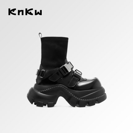 【黄霄云同款】knkw流光机能短靴女秋冬新款厚底黑色英伦靴子增高