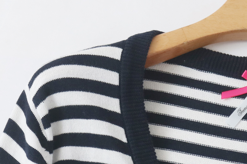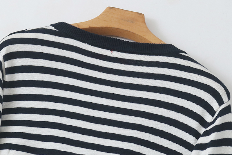 V领中长款条纹开衫 春秋装新款女打底衫纽扣针织衫上衣外套L/14-2