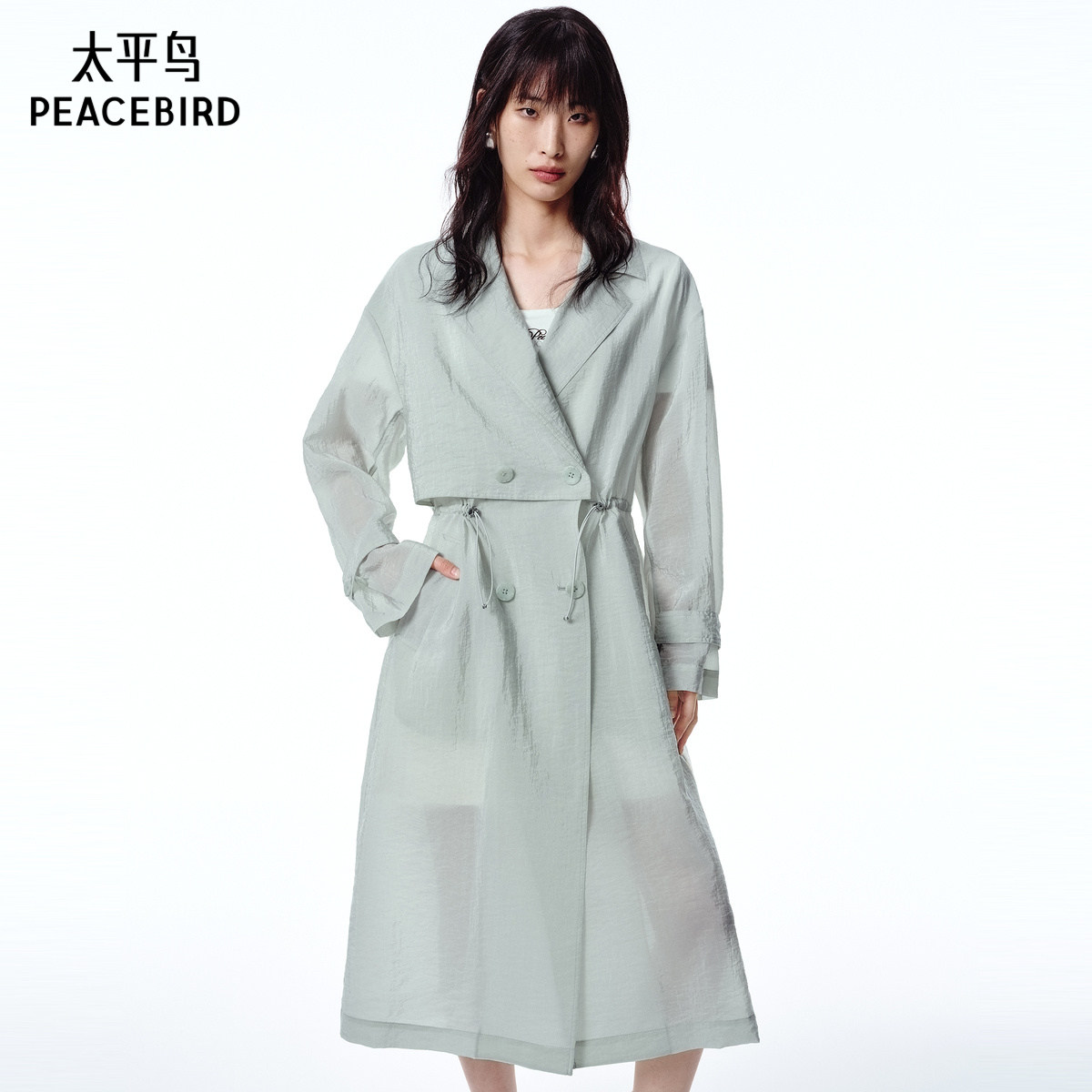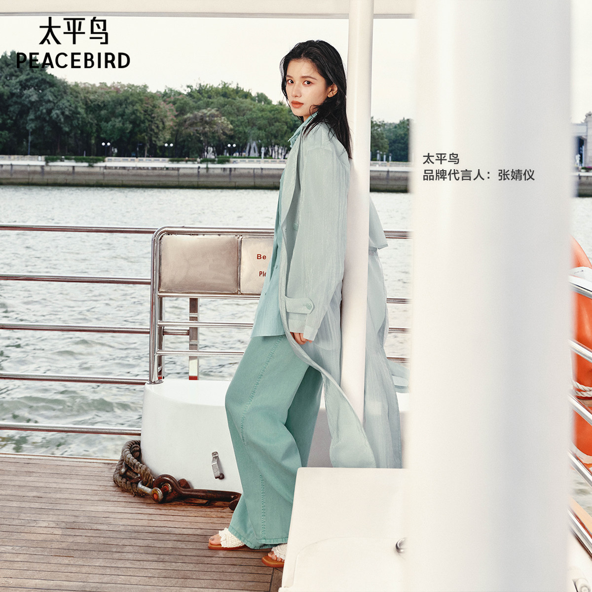 张婧仪同款 太平鸟柔光系列商场新款醋酸混纺风衣外套女A1BBF240B