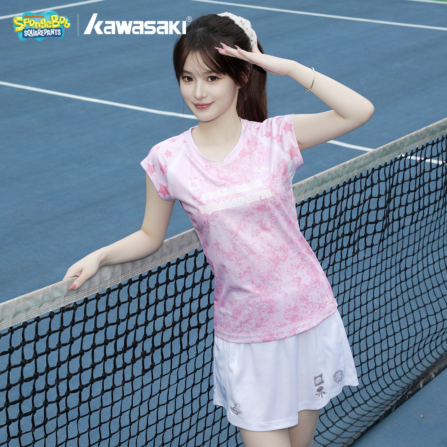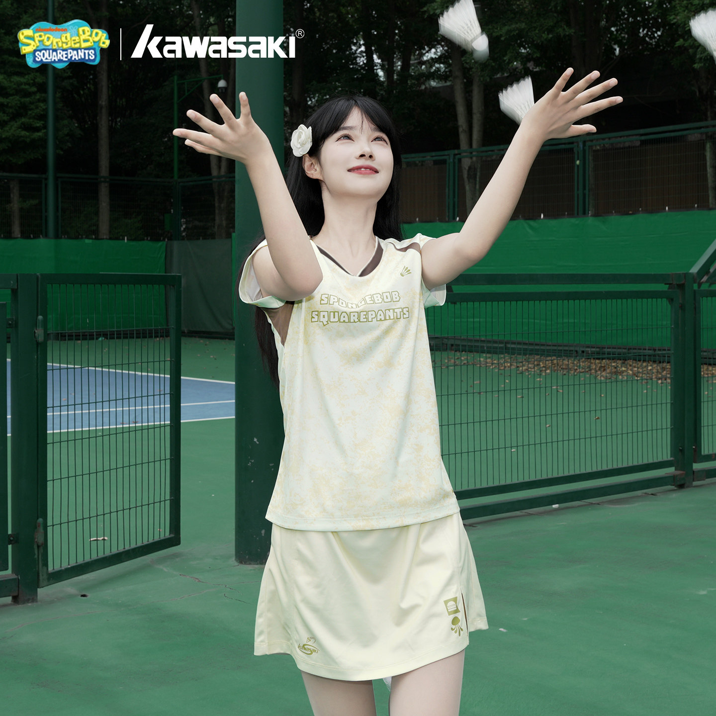 川崎羽毛球服女速干海绵宝宝联名运动短袖短裙套装飞天网球服