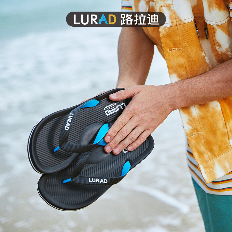 路拉迪时尚人字拖鞋男士夏季厚底凉拖夹拖防滑凉拖沙滩鞋潮流黑色