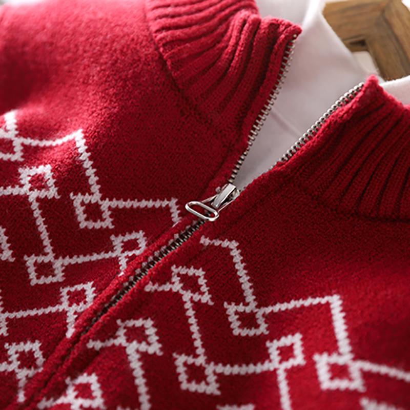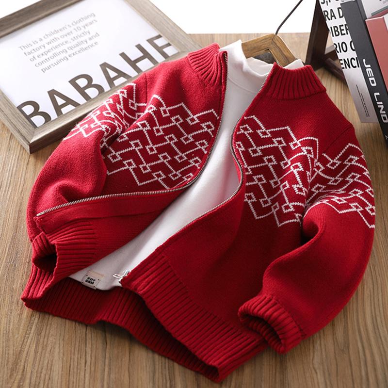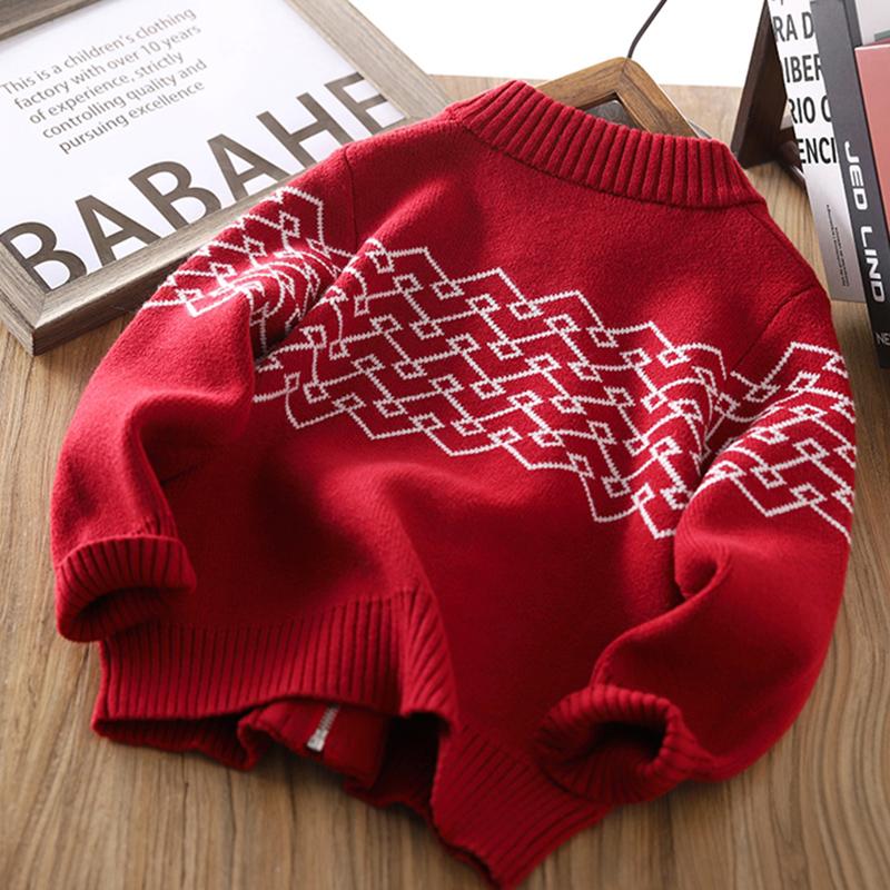 男童秋冬红色保暖针织衫2025新款儿童毛衣外套洋气春秋款针织开衫