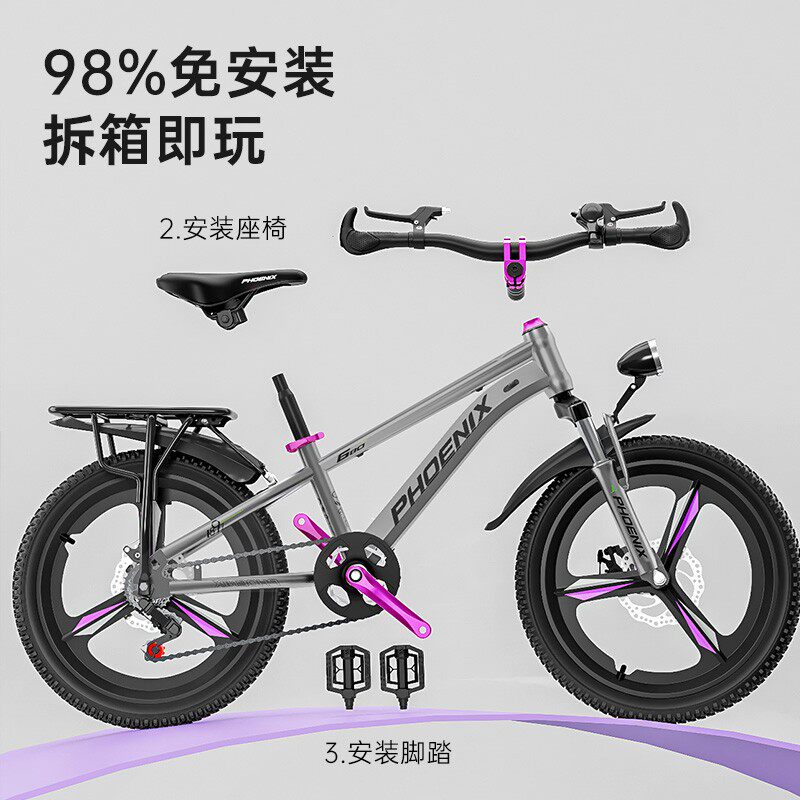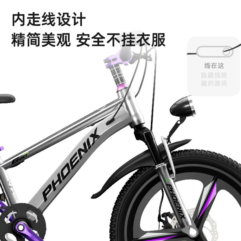凤凰儿童自行车女童男童6-12岁男女孩小学生18寸变速单速碟刹单车