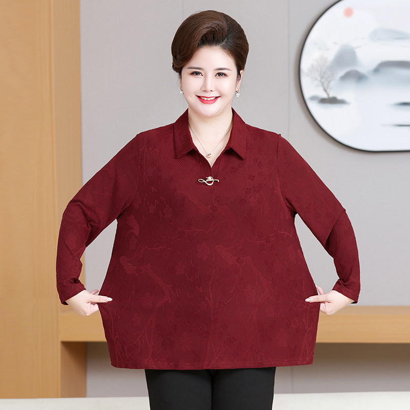 胖妈妈春装长袖打底衫t恤加肥加大码中老年人宽松2026新款上衣女
