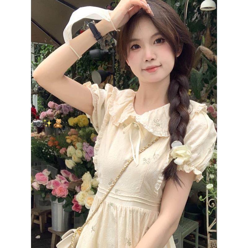 少女学院风森系碎花连衣裙2025夏季新款初高中学生甜美娃娃领裙子