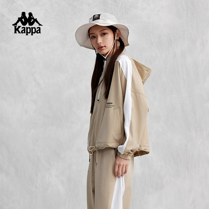 Kappa卡帕女装秋季新款运动休闲简约复古百搭连帽防风衣K0D62FJ43