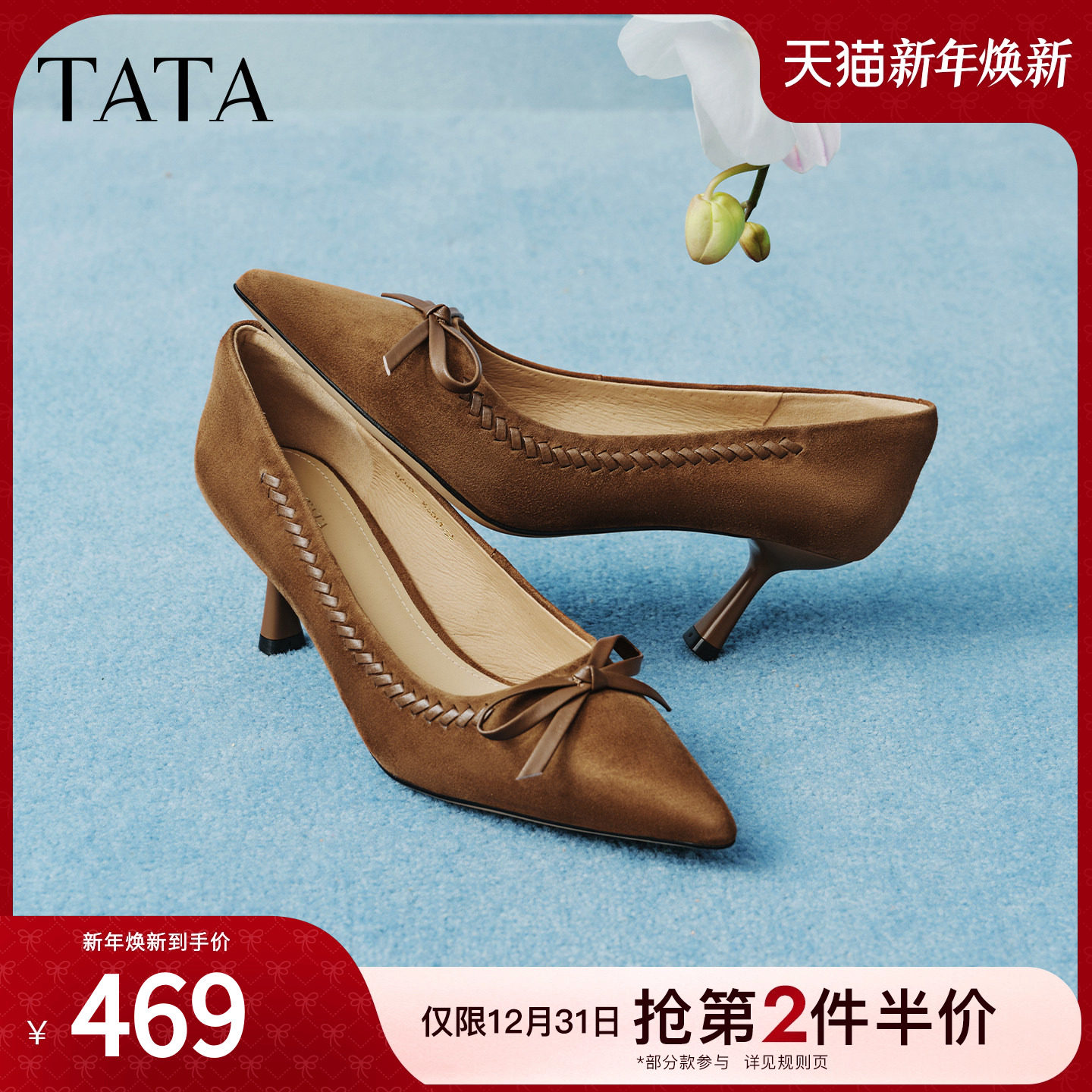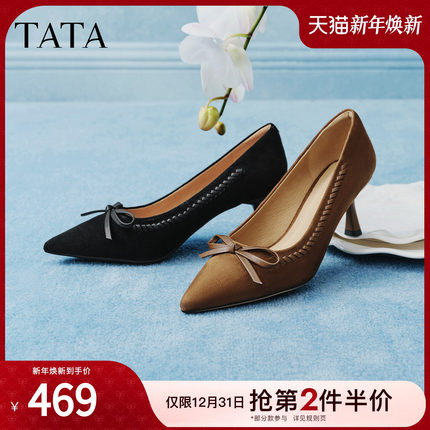 TATA他她女鞋2026春季新款尖头高跟鞋羊皮女中高浅口单鞋UZG01AQ6