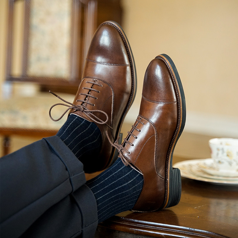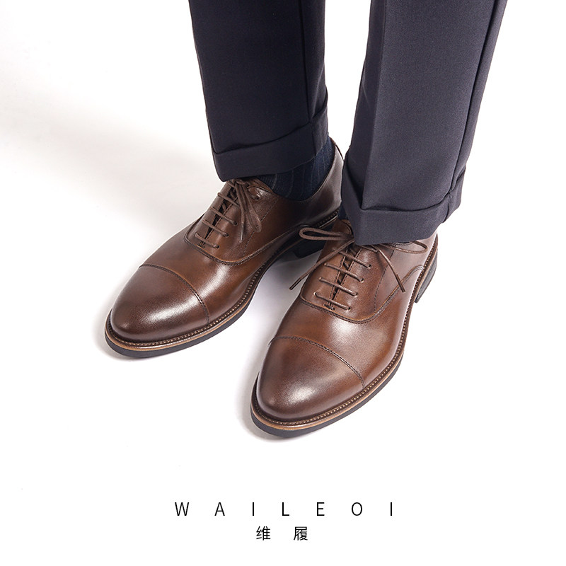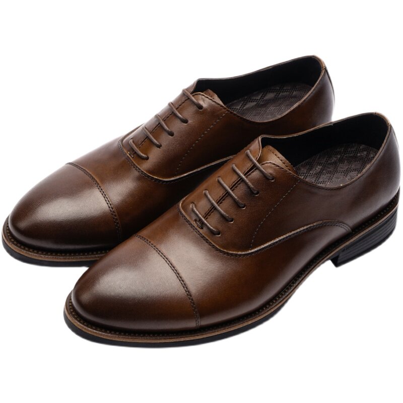 韩版圆头青年手工三接头牛津鞋英伦商务正装皮鞋男士新郎结婚鞋